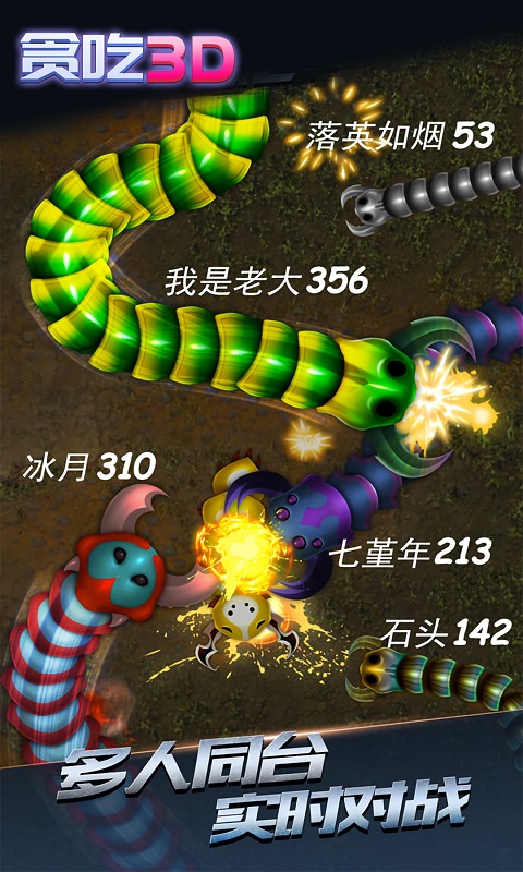 不同于传统的贪吃蛇撞到身体会死亡,现在可以截断其他蛇的身体,快来吃掉其他蛇的身体来变得更长吧!