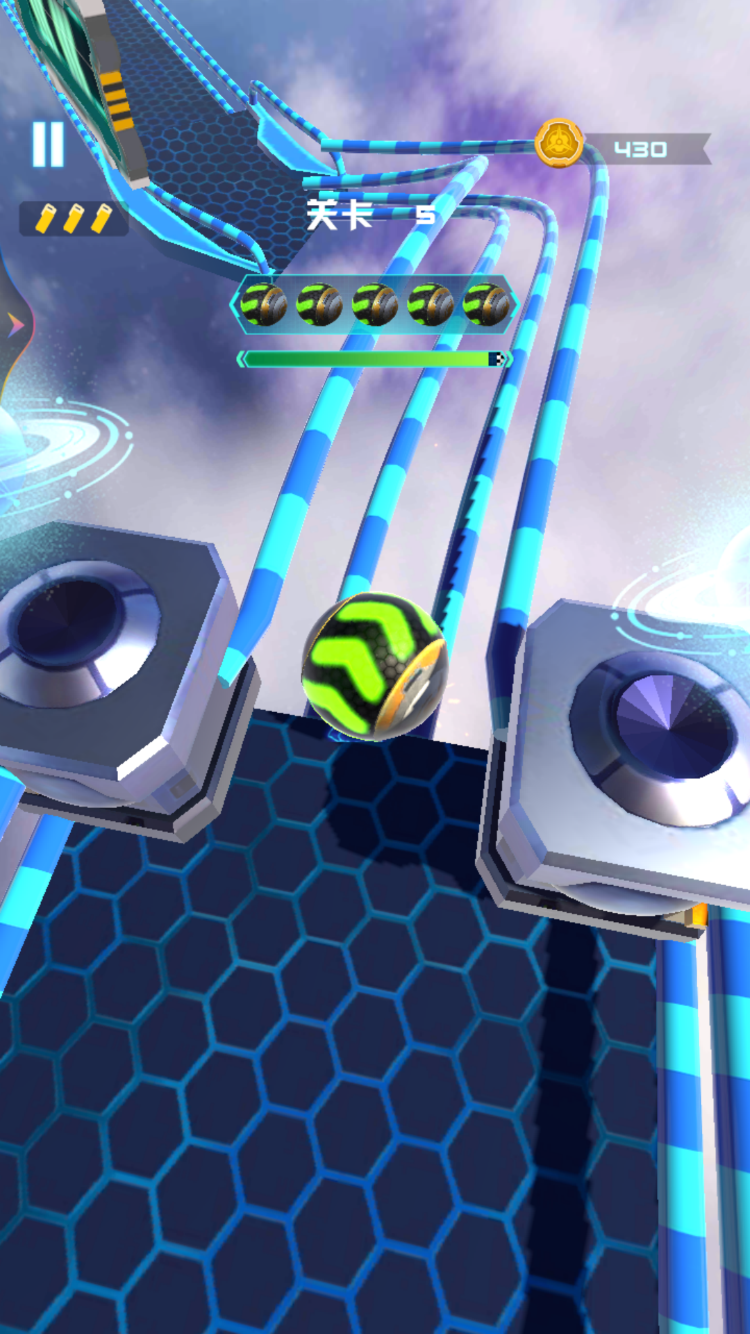 太空滚动的球球是一款休闲类的竞速游戏,在画面上采用了以极简而独特的美术风格,再加上别出心裁的关卡玩法,相信可以给玩家带来不一样的竞速体验。在这里玩家只需轻按屏幕即可改变球球运动的方向,千万不要偏离跑道,只有通过终点才能进入下一关卡。游戏中小球会不断的向前进行和飞跃,我们需要控制它在未知的太空赛道中不断前进,要注意避开前方的障碍以及陷阱,现在就让我们一起来试试吧!