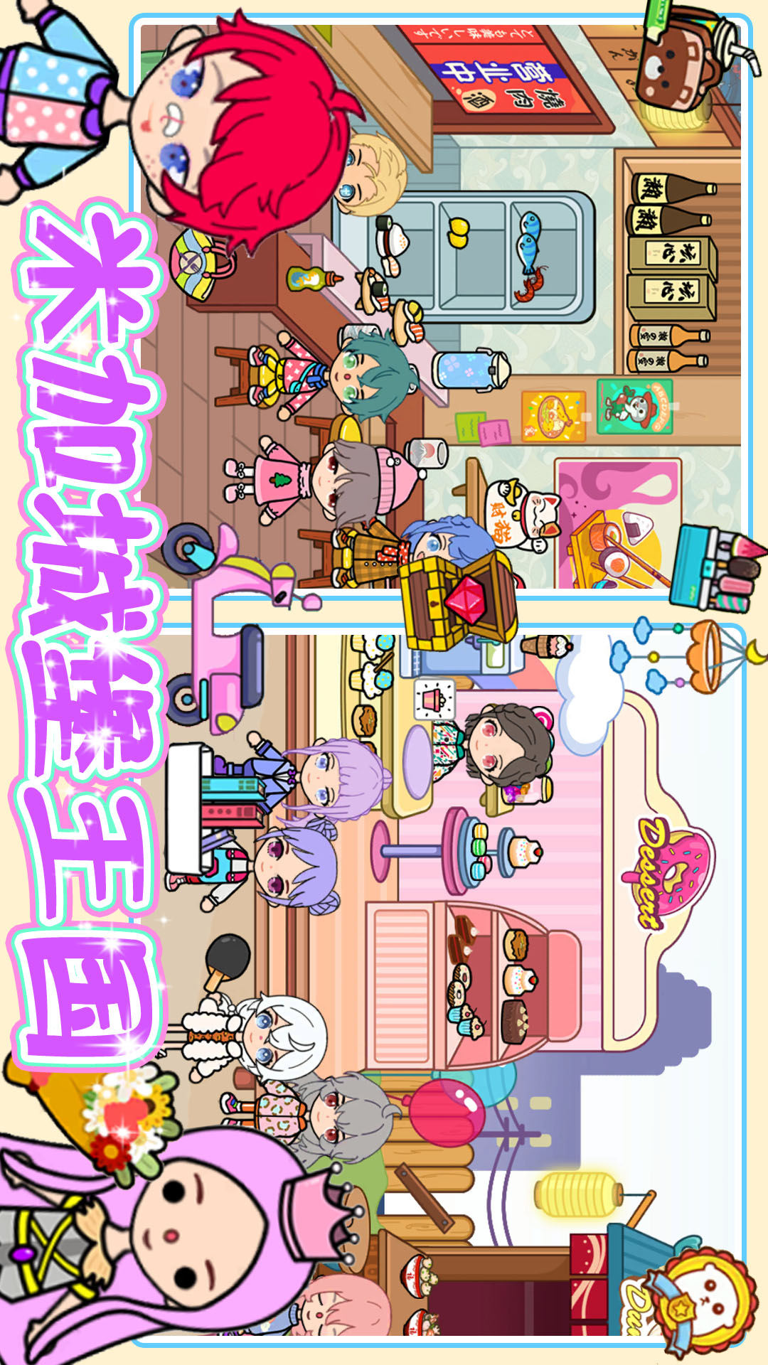 -度假美食街:阳光、沙滩、海浪、老船长!在海滩上游戏,去寻找小岛上美人鱼的秘密!!你可以打沙滩排球或与你的朋友在岛上探索神秘的宝藏。同时美味佳肴也在等着你,或许会因为太丰富太好吃,吃多了你的胃会抱怨,哈哈!!