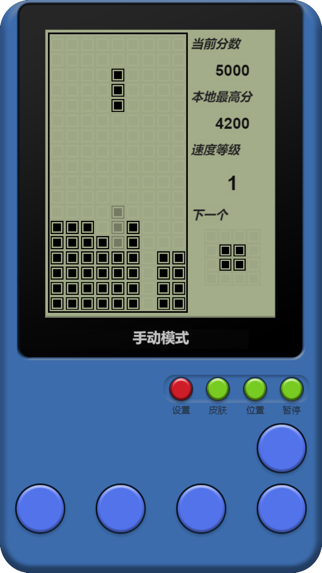 池塘边的榕树上,等等,还记得小时候玩过的俄罗斯方块游戏机吗?这款游戏完美还原了童年的游戏掌机,特有回忆感,操作简单,容易上手,让你回到童年的时光,怀旧的你,赶紧尝试一下吧!