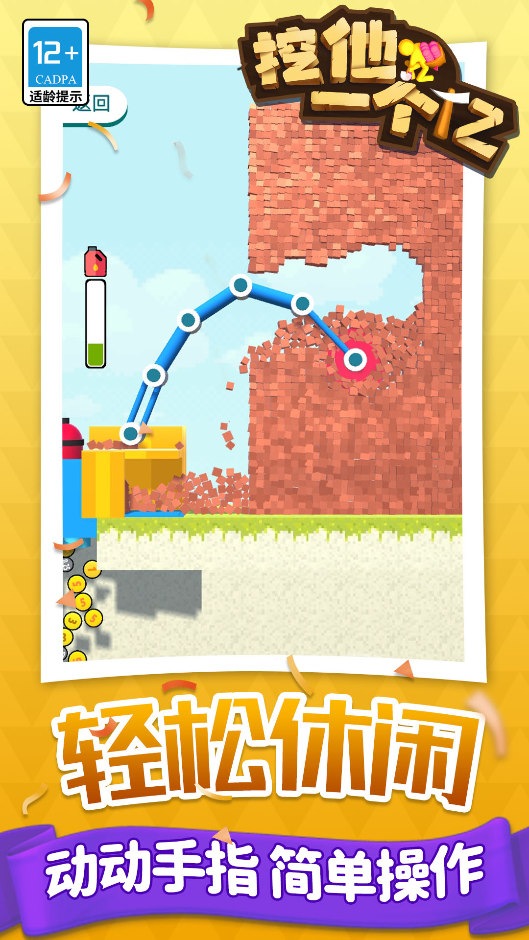 《挖他一个亿》是一款像素风的休闲益智创意类小游戏。开局一台挖掘机,可以随意粉碎各式墙体,过程解压;每一个关卡设置了不同通关目标,海量关卡等你来挑战;通关成功还能解锁全新工具,各种稀有矿物等你来收集,快来体验一下吧~