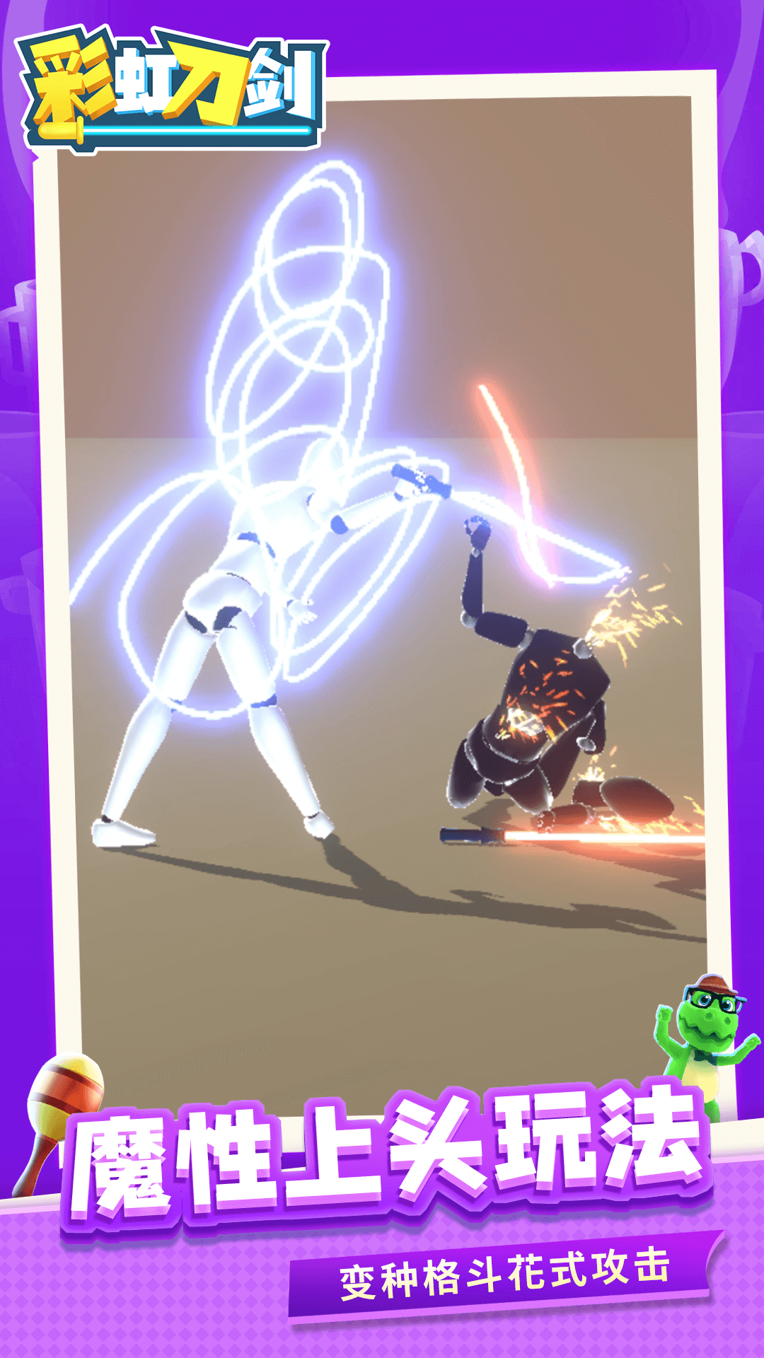 《彩虹刀剑》是一款趣味格斗竞技小游戏,玩家需要通过操控角色使用自己的光剑与对手交战,玩家可以随心所欲绘制不同类型的光剑,每个光剑的威力都非常强,只要熟练使用这些光剑,就能轻松击败对手,迎战更加强大的对手,每个人物都有不同的攻击手段,有的可以释放火焰,有的可以释放闪电,给玩家带来爽快刺激的光剑战斗体验。