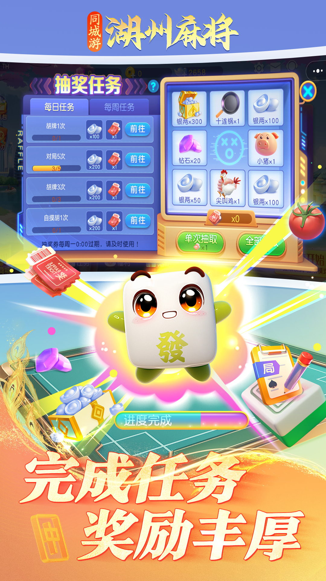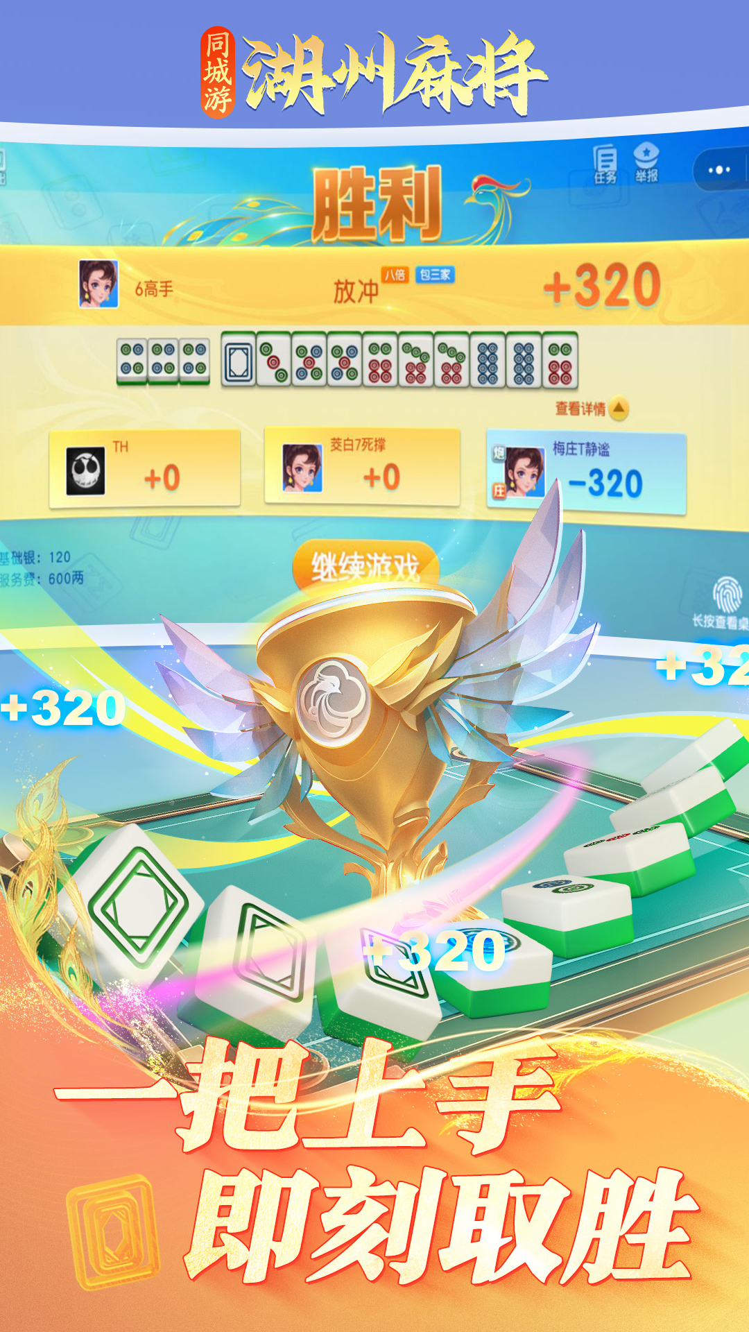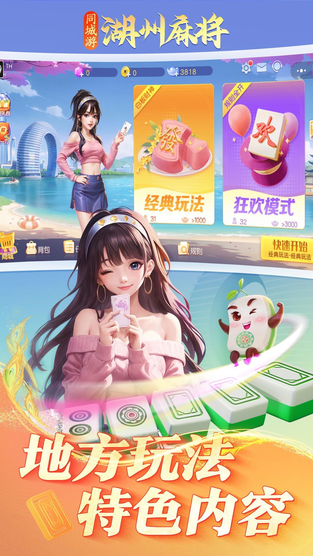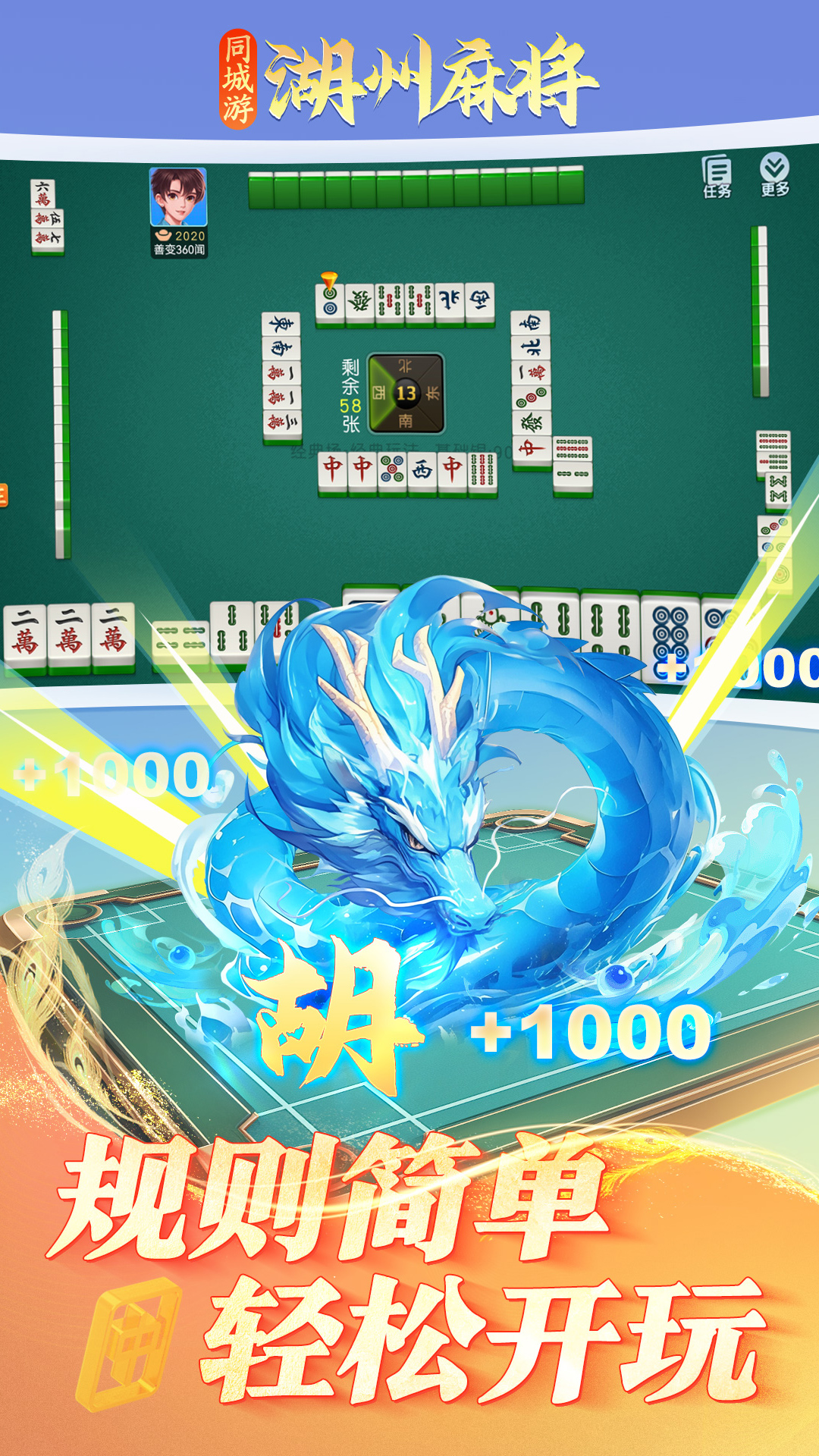 同城游湖州麻将流行于浙江省湖州,是一款广受欢迎的地方性休闲麻将游戏。湖州麻将以快速和牌为目的,简化了繁杂多变的胡牌牌型,计算方便,通俗简单,游玩体验轻松愉快,正在成为湖州地区人气超高的娱乐方式。湖州麻将以白板为财神,也就是万能牌,舍弃了花牌和许多复杂的胡牌牌型,只保留基础的平胡、七对,以及特色的四百搭,新手入门轻松愉快。