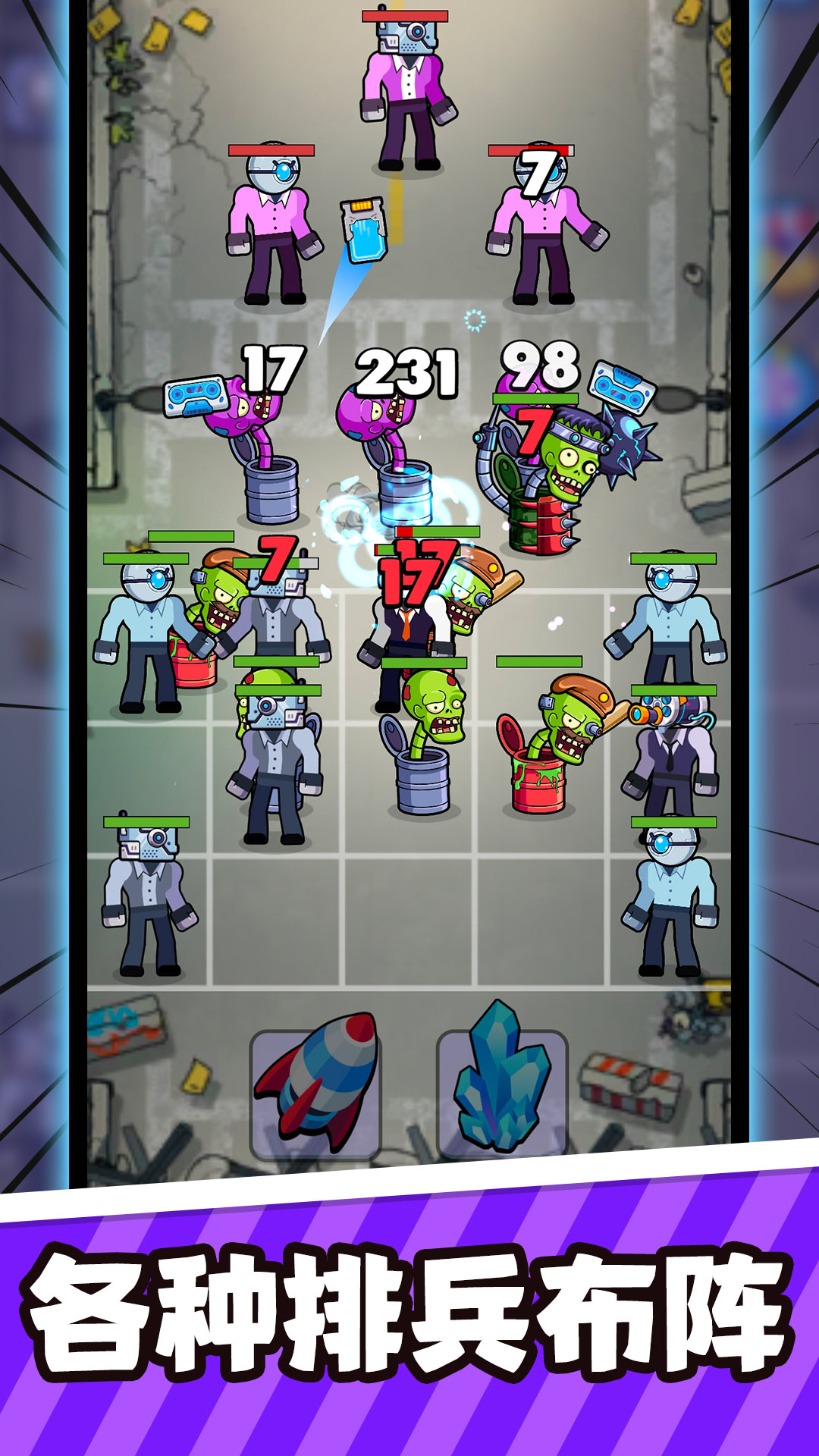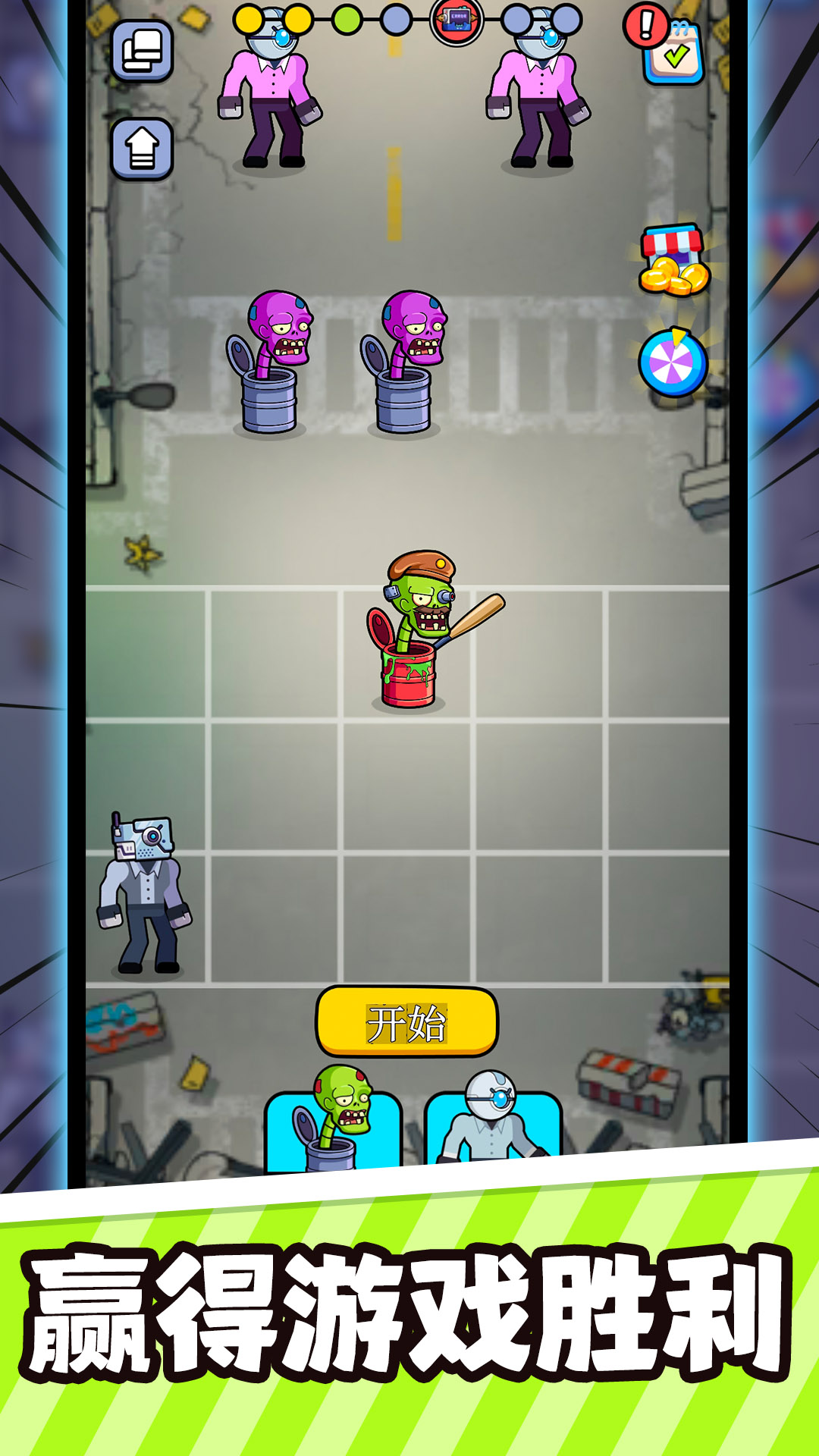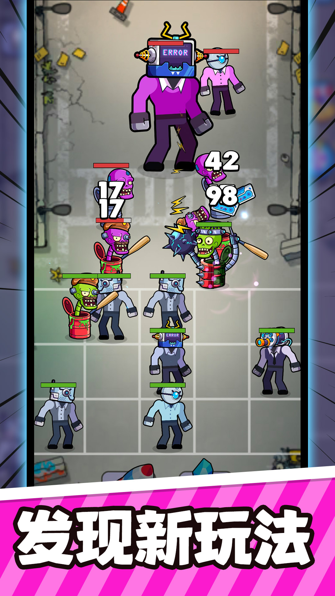 战地火线是一款终极合并战斗游戏!在这个令人兴奋的新游戏中,您将收集并合并僵尸怪物和赛博机器人单元,创建一支强大的怪物军队来对付您的对手。
