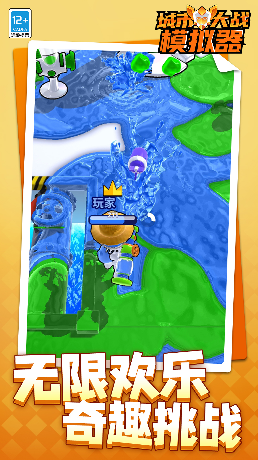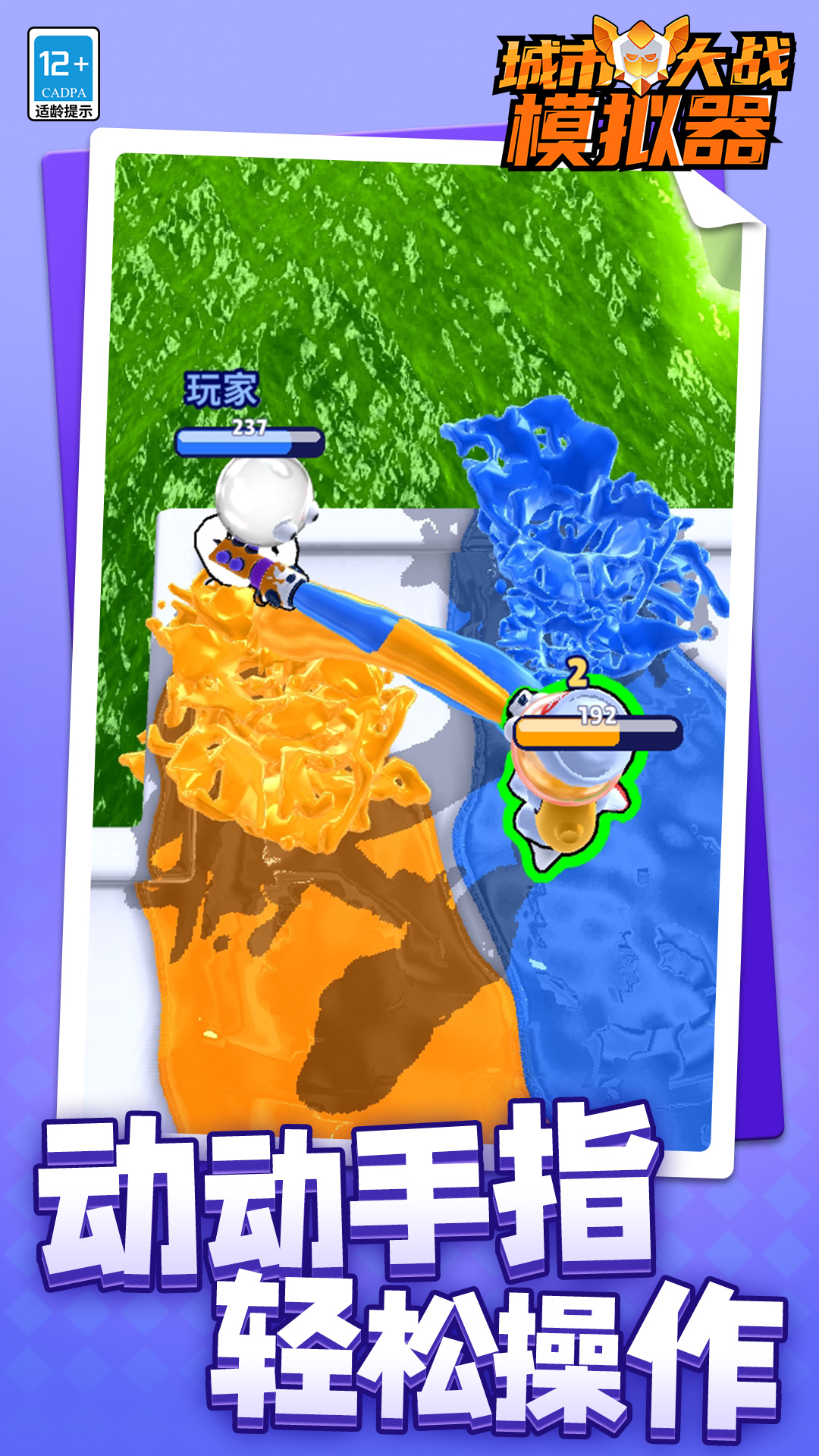 《城市大战模拟器》是一款独特的多人射击对战游戏,在色彩战争中玩家能够进行独特的多人射击体验和自由动作互动设定,在游戏里,玩家必须与团队争夺比赛场地的颜色, 玩家需要将油漆喷射涂抹在周围并把对手基地涂抹为玩家队伍颜色由此来获胜。快来感受独特的射击对决吧!