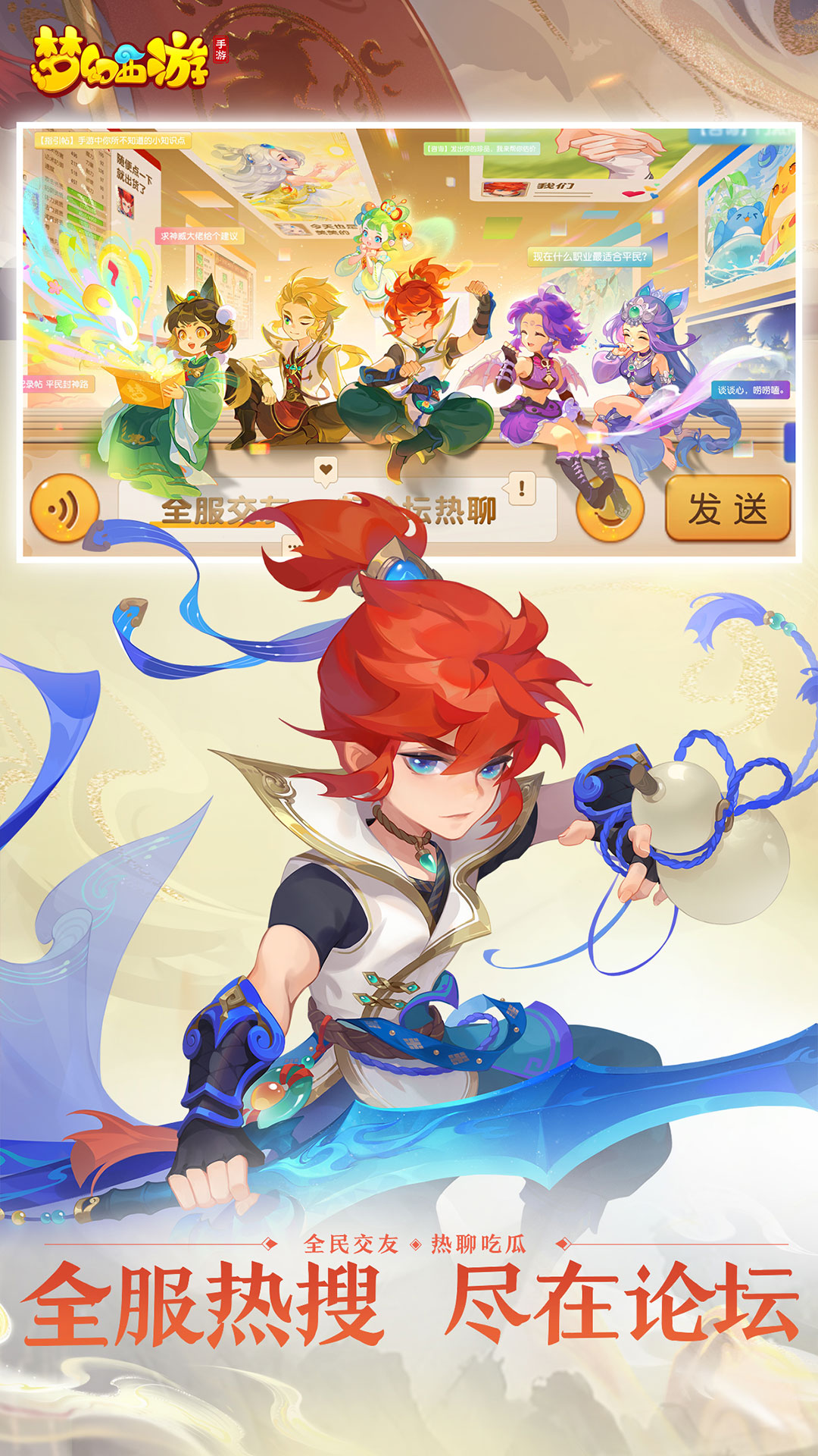 【全新内容】 长孙靖 长孙靖正式登场,三界共迎天命新人。9月4日起,解锁700活跃度,免费转角色券等你拿,转角转职限时半价风暴,畅享优惠,角色转变,乐趣翻倍,同时少侠将陪同长孙靖一起踏上西行之旅,体验车迟国精彩剧情。 天山召唤灵 天山之巅,召唤灵焕新!车迟国新召唤灵降临,狐不忧、天山月施展法术,独步天下,单体击败,群攻紧随其后;北风吼、虎力大仙挥动武器,暴击之后,连击不断,每回合力挽狂澜。体耐兼顾,全新召唤灵引领战术革新。金桂飘香赏婵娟,百宠仙池重启归来!天山灵物,等你来祈愿,共谱三界新篇章! 幻乐飞天2.0 天山之巅再起风云,羊力大仙震撼登场,全新十人团本静候挑战!灵魂视界善恶翩跹,天平浮沉恶意横生,等待一众少侠显露神威,通过策略战斗应对首领技能。唯有团队智勇并用,方能驾驭天平倾斜,协助羊力大仙战胜心中的恶念。三界英豪,共赴天山祭坛,书写车迟新篇。 梦幻漂流瓶 《梦幻西游》手游社交新模式来了,九月正式