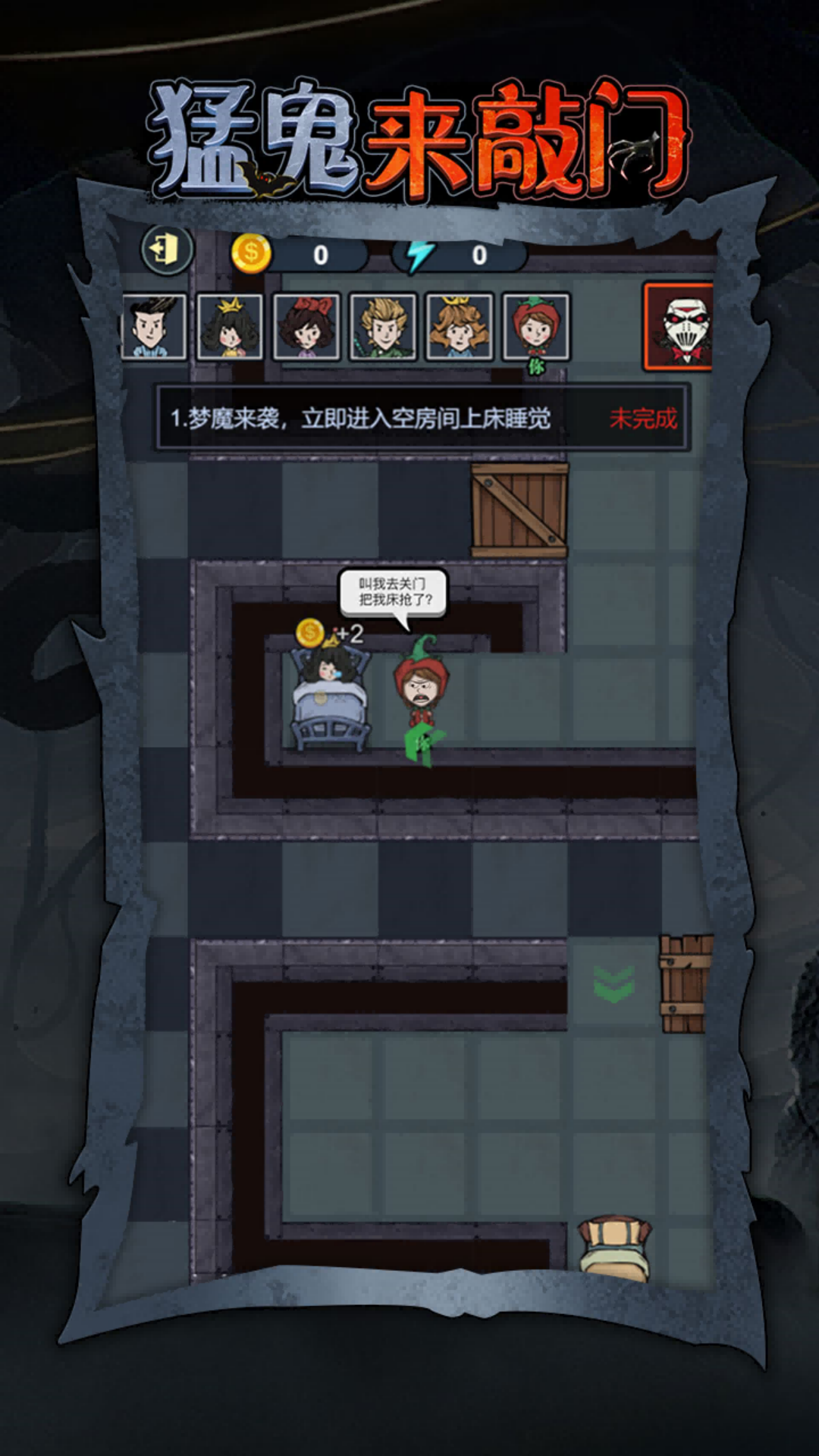 《猛鬼来敲门》是一款融合塔防策略和密室冒险玩法的游戏。前期玩家需要发育,通过入睡来发财产出升级装备道具。在与猛鬼周旋中不断丰富房间装置,对抗强攻,顺利存活才能闯关成功!