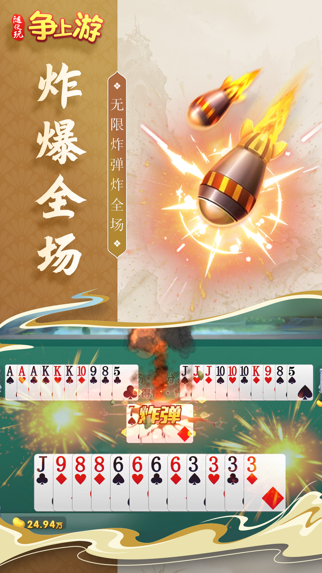 随便玩争上游超有趣哦,这里有各种各样的玩法,每一种都刺激又风趣,能让你嗨到爆!而且福利活动超丰富,玩家之间的互动更是过瘾得很呢。