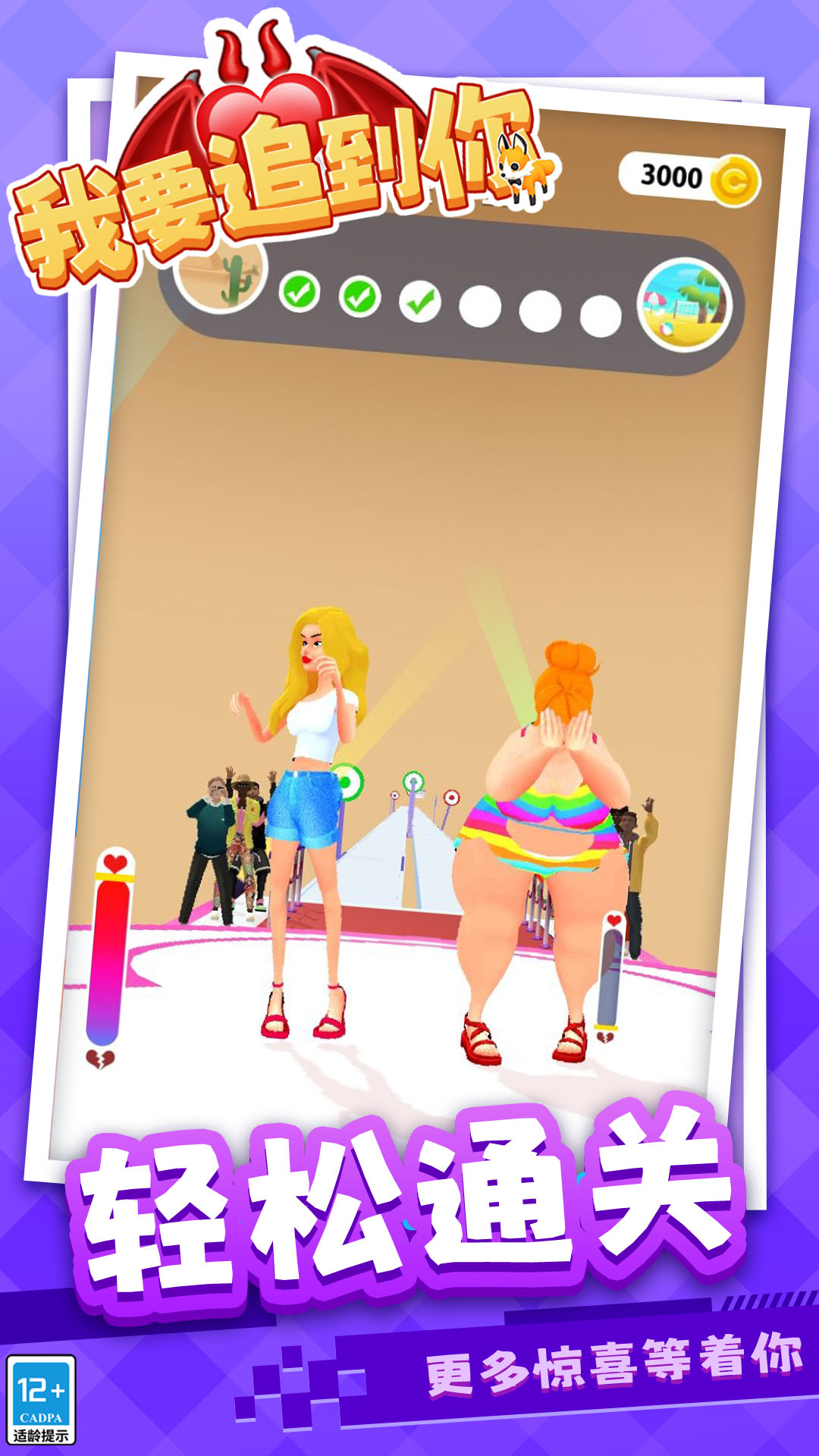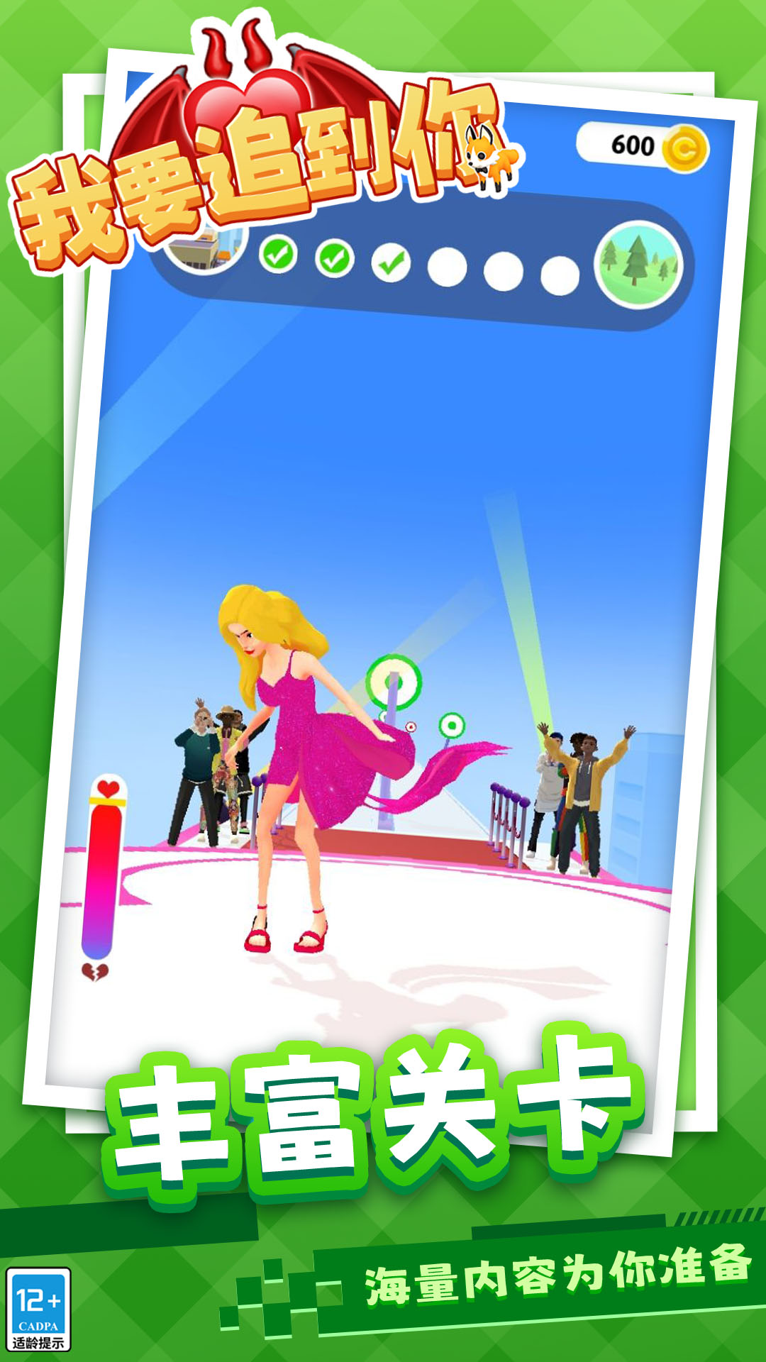 《我要追到你》是一款有趣又与众不同的跑酷闯关游戏,游戏以全新的主题展开,各种有趣的挑战应有尽有,玩家需要一边秀恩爱一边进行跑酷闯关。游戏关卡数量很多,玩家可以自由体验不同的关卡内容。感兴趣的小伙伴快来下载吧。