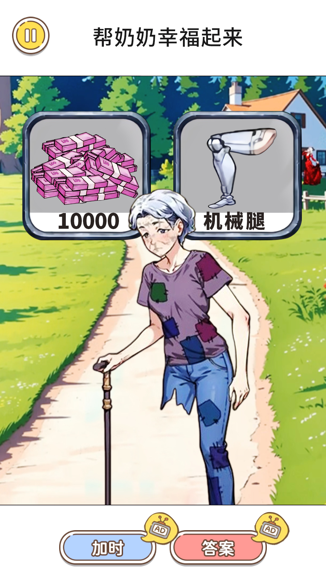 《帮奶奶幸福起来》是一款休闲益智游戏,游戏中你可以帮角色做出选择,根据游戏提示做出争取的选择才能完成挑战,一定要仔细思考,再做出选择!