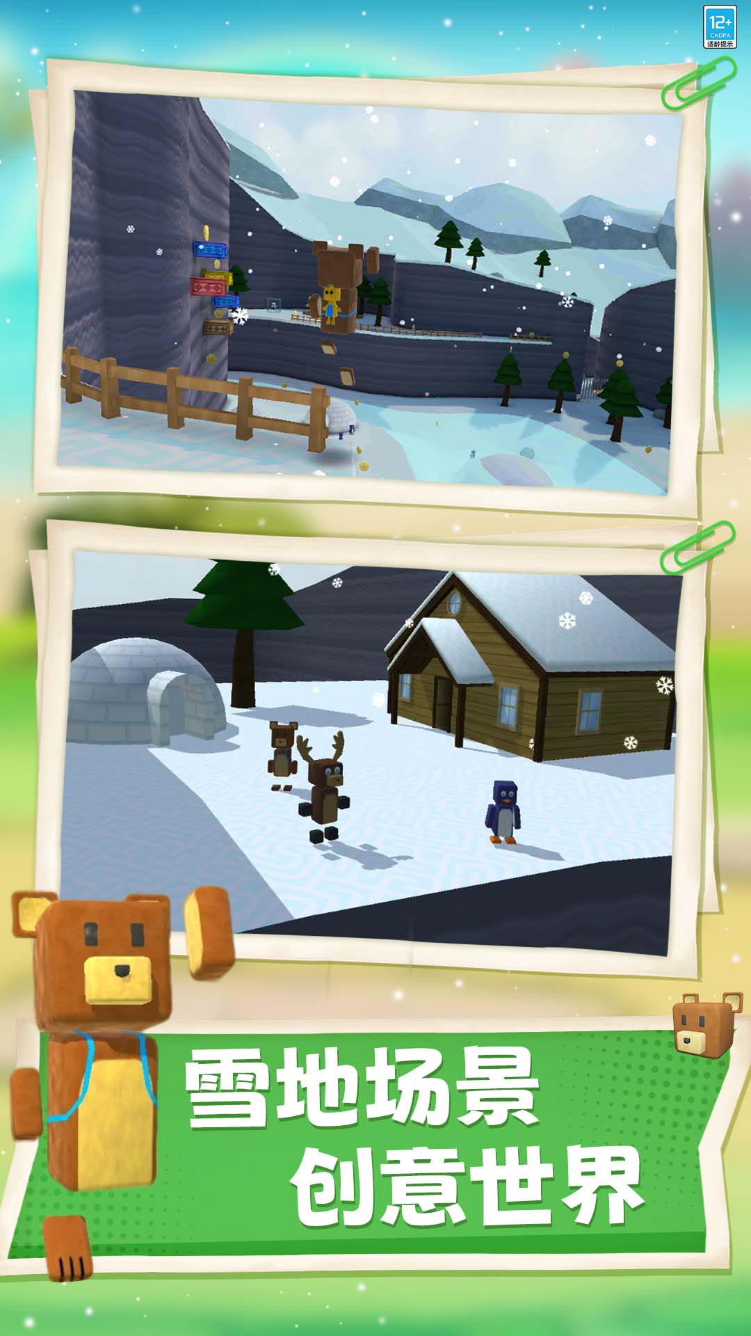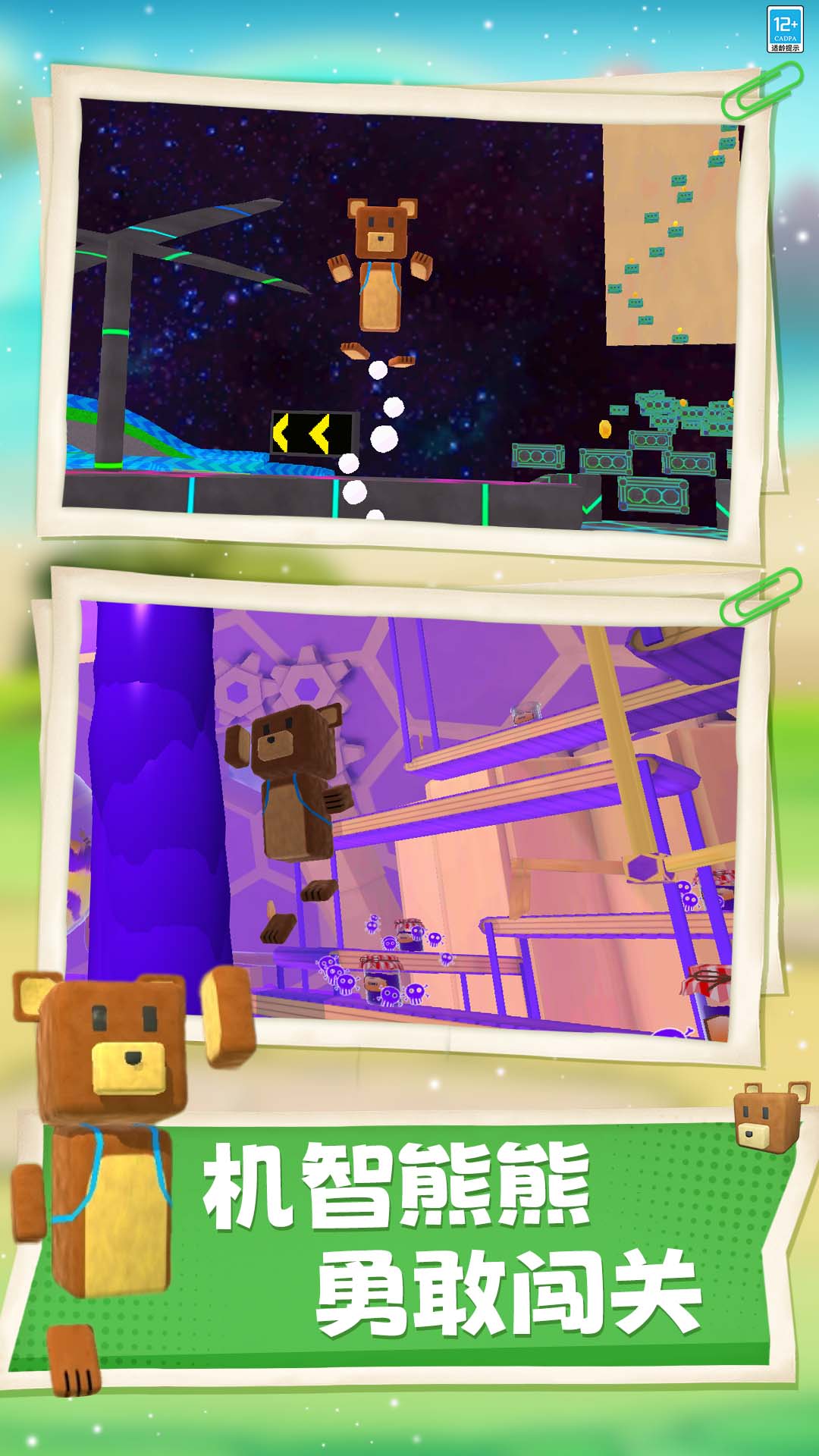 熊熊历险记是一款模拟闯关类游戏。游戏里,你的首要任务是解救出被困的熊熊,在关卡中收集金币,寻找钥匙,你还可以和场景中的角色进行对话,它们也许会给你提供解救的线索!任务过程中,当你收集到足够的金币时,你可以返回到熊村,那里为你准备了许多精美的服饰装扮,你可以任意选择穿上它们,给你带来不同的游戏体验!