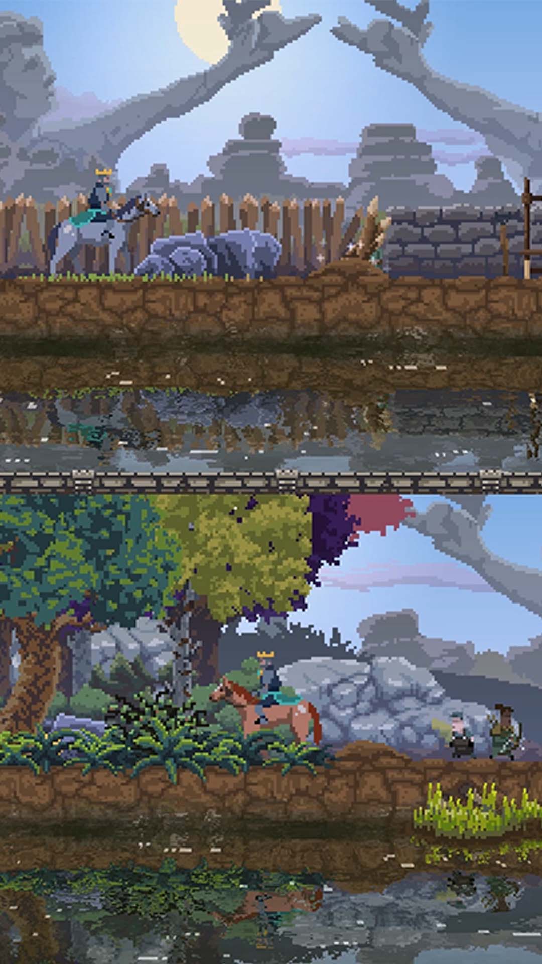 国王排名是一款极简风格的像素画风横轴微策略游戏,美术风格精美而现代。化身君主,骑上坐骑,征召忠诚的子民,建造你的王国。保卫疆土,不要让贪婪生物掠夺你的财富和王位。