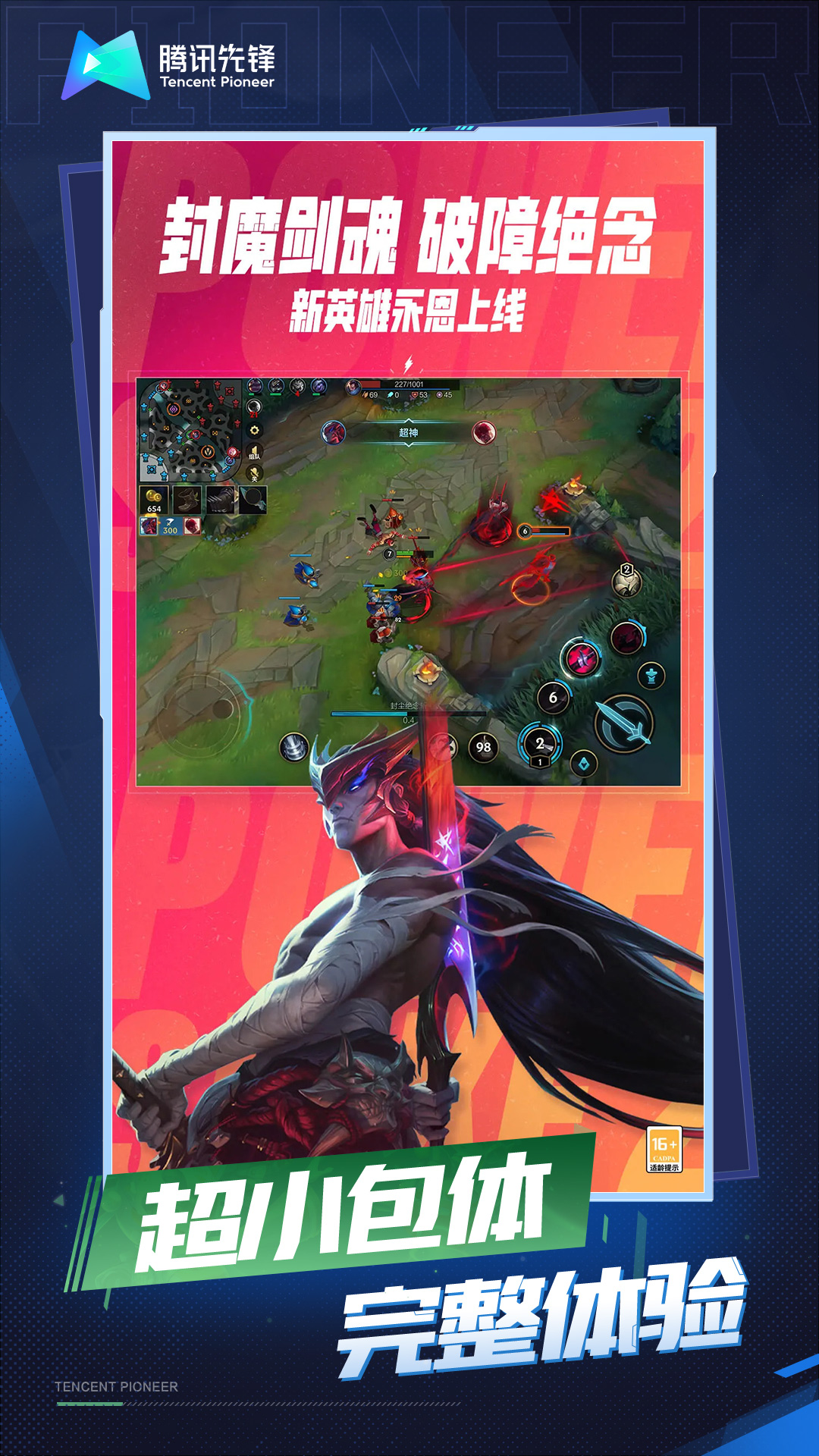 《英雄联盟手游云游戏》是腾讯先锋云游戏与《英雄联盟手游》共同推出的云游戏体验版本。仅需15M的超小包体,就能体验完整的游戏内容。此版本具有诸多优势,无需更新,不会让设备发热,耗电量低,对机型的要求也不高,只要一键下载,即可马上体验!