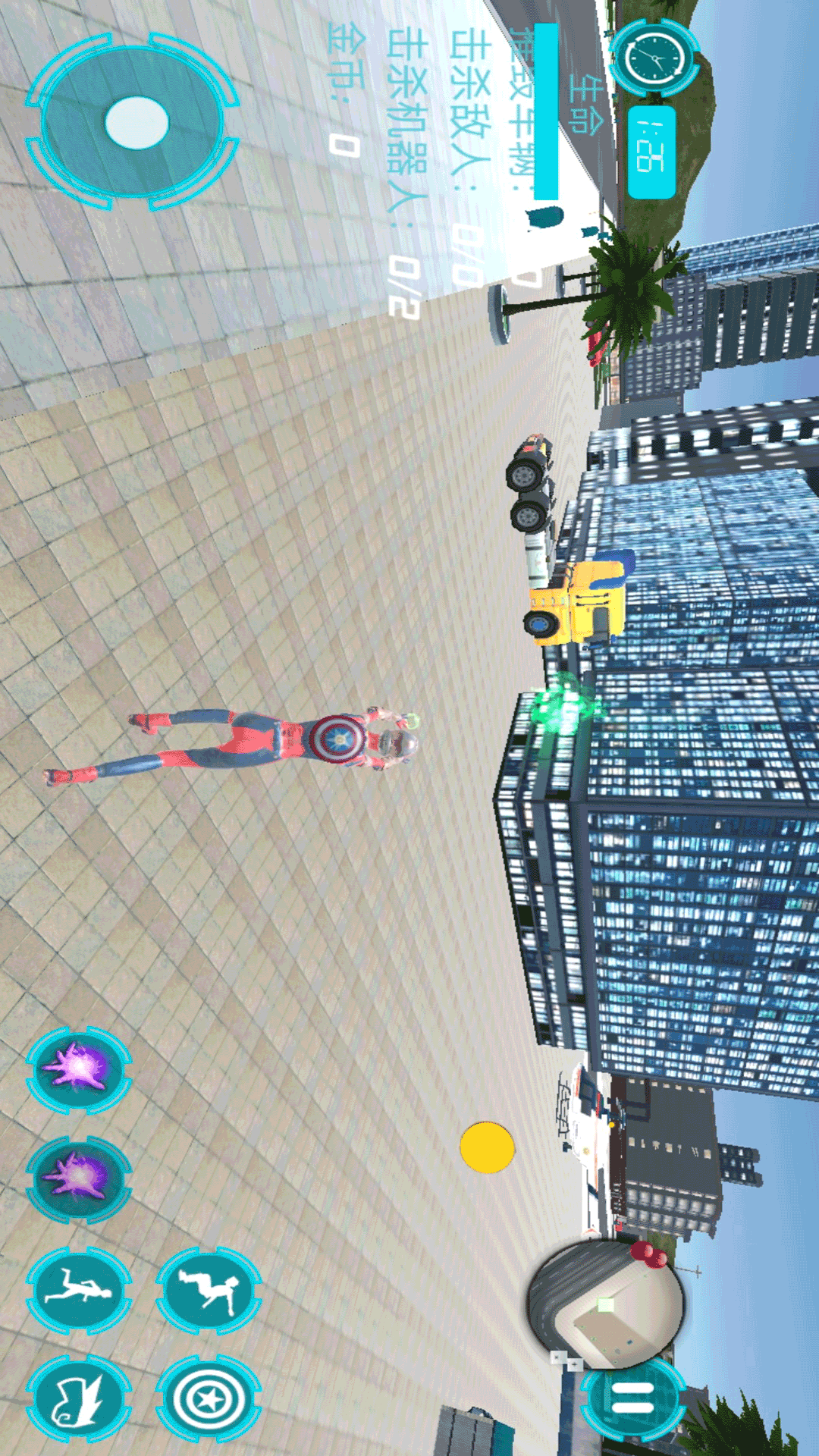 在游戏里面打击犯罪,用你的战斗技巧和战术来拯救世界,保卫和平。游戏中设定了各种各样的任务,从城市街道上消灭劫匪,罪犯和街头歹徒。让你身临其境高清逼真画质,简单容易操作。启动飞行模式,根据战场随心选择强大的攻击力,维护世界和平,成为正义的化身。