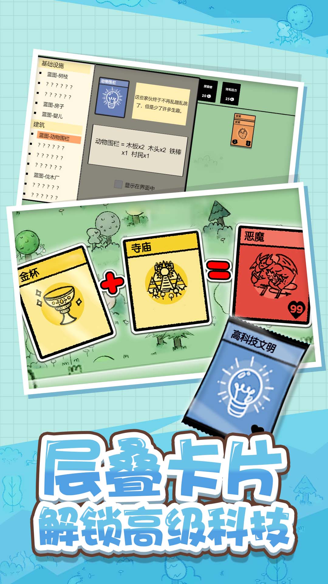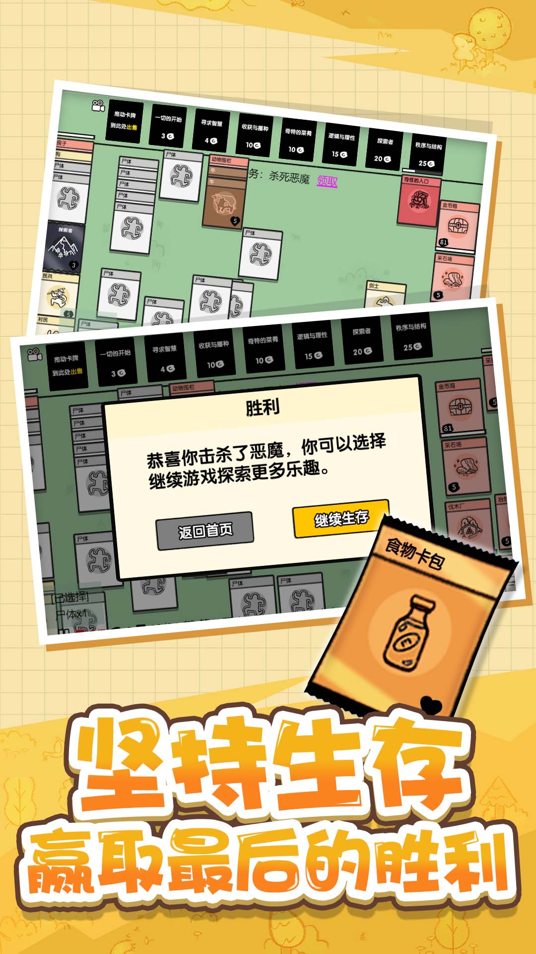 你是否玩过将城市经营与卡牌堆叠玩法相融合的生存游戏?如果没有,那么你现在可以尽情体验了!开局一包卡,随机开出各种物品卡牌,你生存需要的物品全在这些卡里,通过合理的安排、堆叠,不断探索纸牌的组合,收集食物与修建建筑,应对逐渐变强的怪物,带领你的村庄生存下来,并在完成任务的同时变得更强大,击败终极BOSS大魔王。