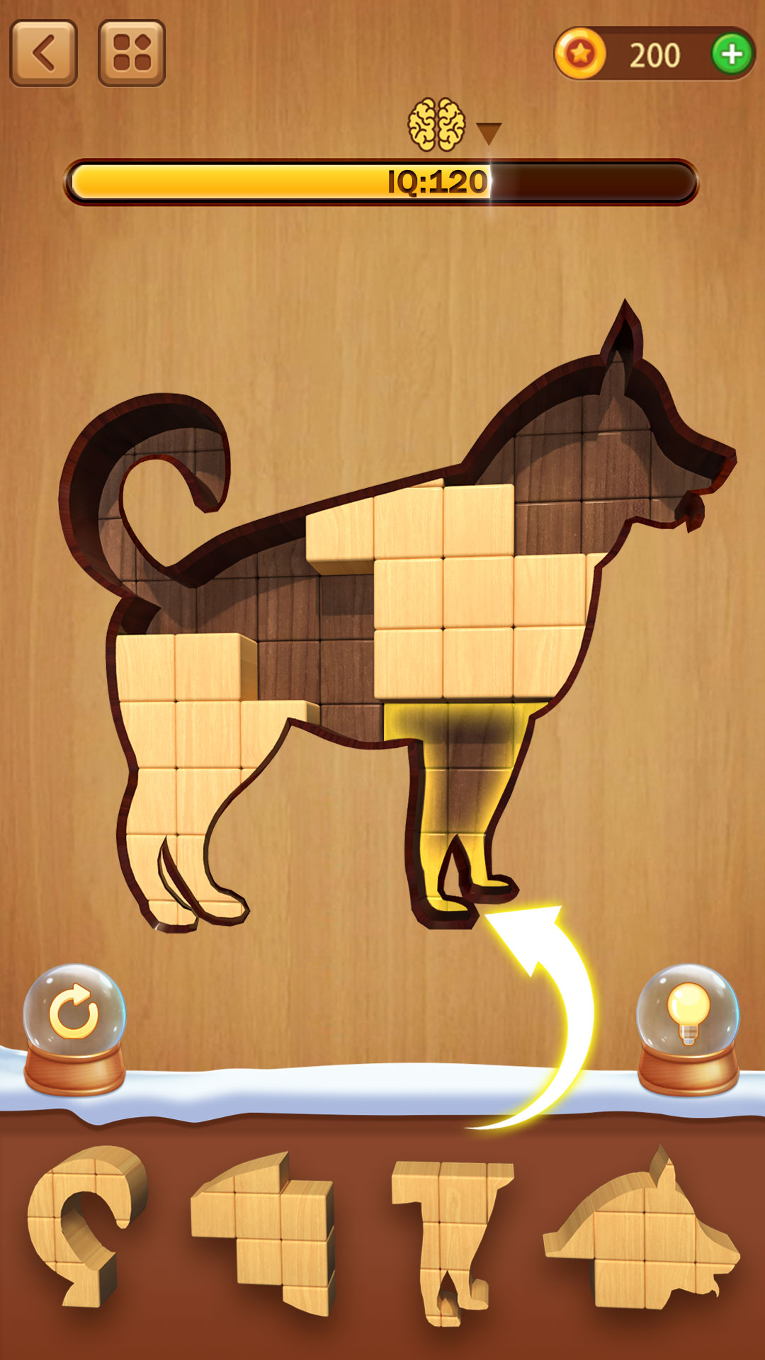 -规则简单,易于上手:只需拖动方块,根据形状放置指定的位置即可