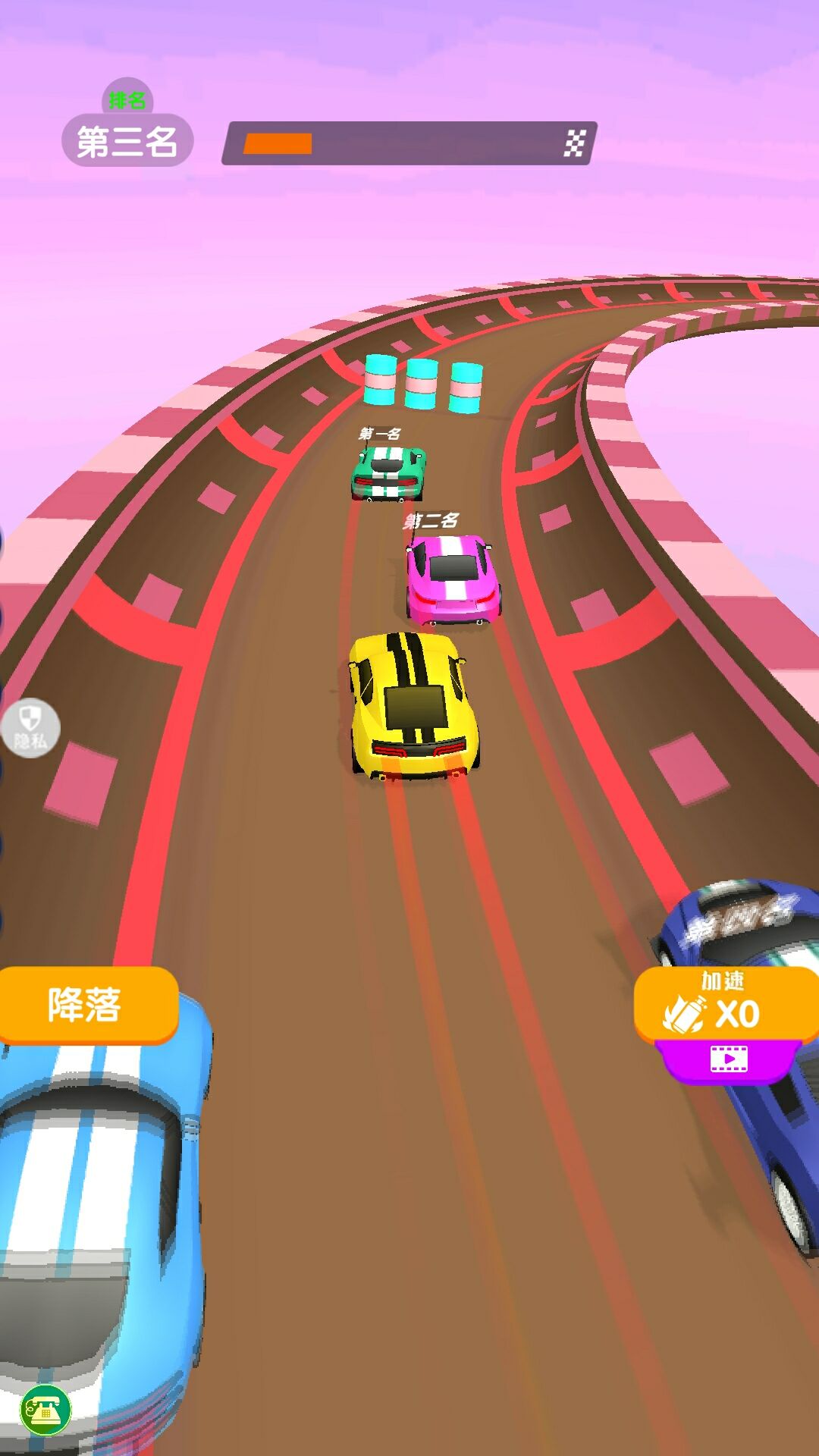 1、在赛道上全速行驶,避开各种障碍,顺利到达终点,成为赛场冠军;