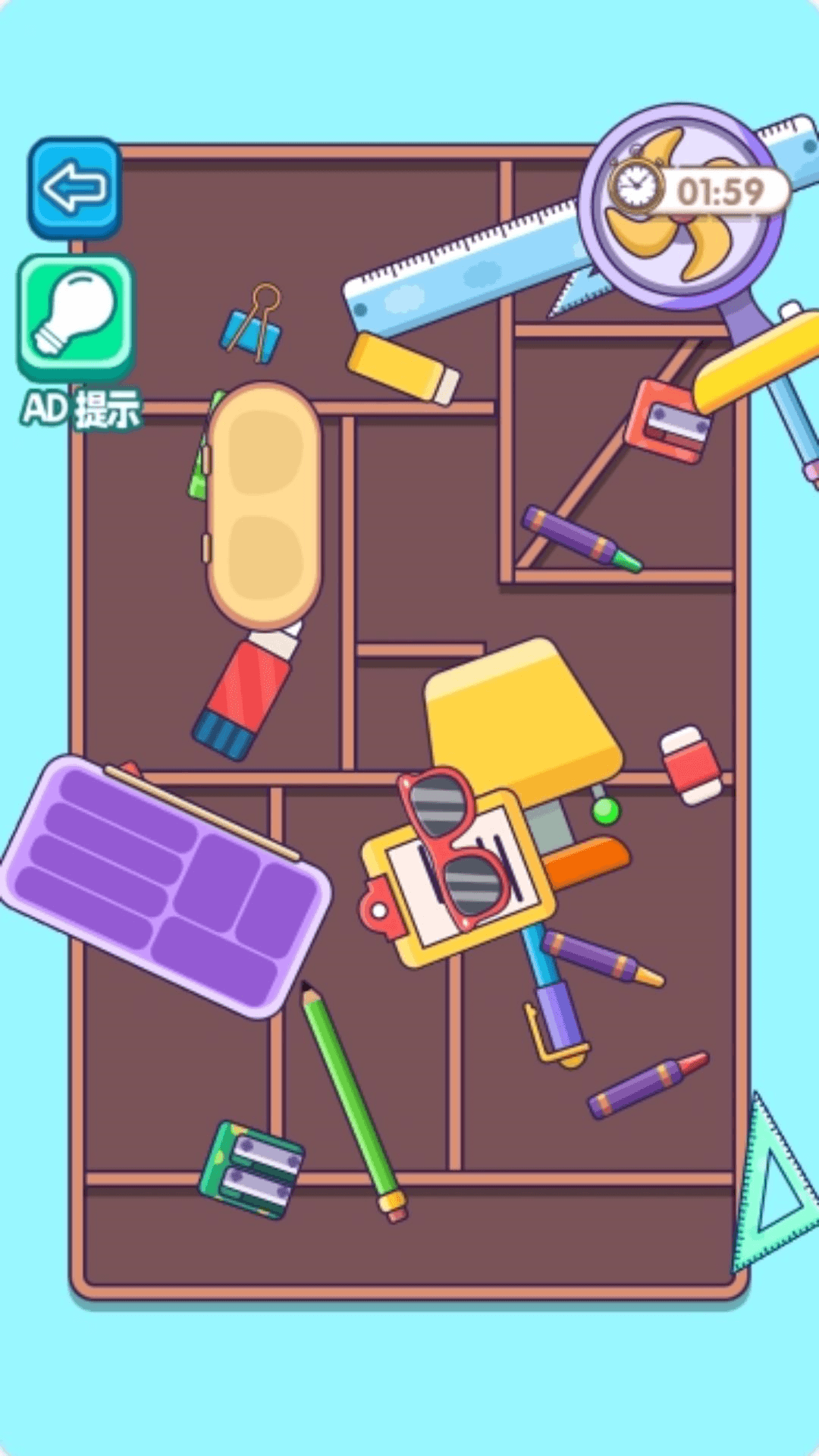 是一款超级解压的休闲小游戏,超多的趣味关卡,丰富的收纳设计,玩家需要把关卡中散落的东西都整整齐齐的收纳起来,动用你聪明的大脑在有限的时间内完成关卡吧!