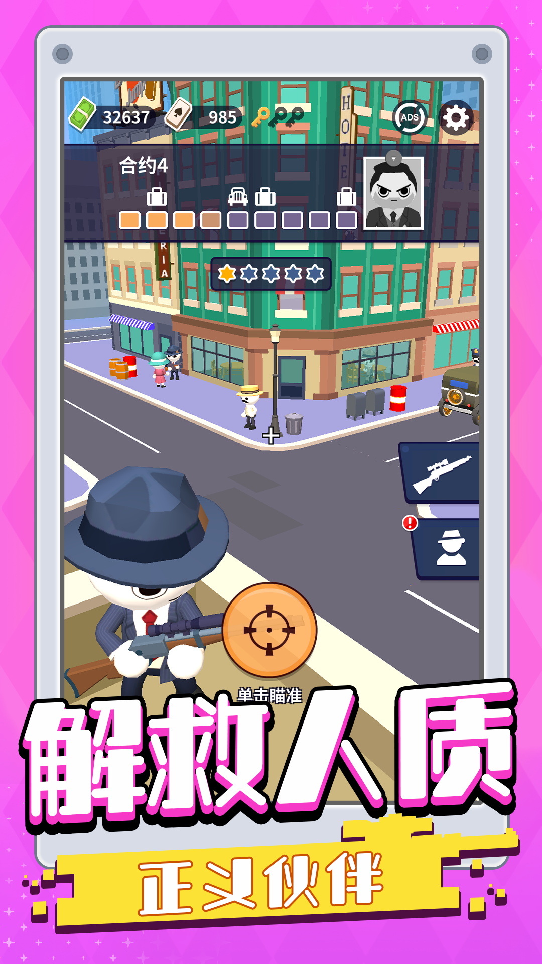 超爽快刺激的枪战游戏,逼真的击败特效,感受子弹飞舞的瞬间,弹无虚发,哥潭的光明由你来守护。解救被困的人质,击败凶狠的黑手帮,注意安全,不要被敌人发现了,躲在掩体后面,伺机而动。游戏内置超多种类枪支,步枪,狙击枪,手枪,ak等供玩家选择,还有各色皮肤,随心更换,完成悬赏任务,还能解锁神秘奖励哦。