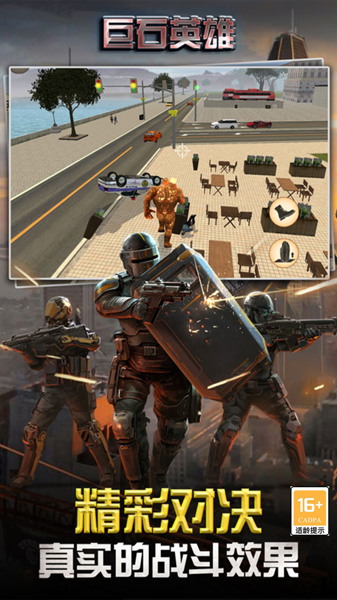 非常精美的游戏画质打造,真实的战斗效果,酷炫的技能释放,使用石头攻击各种车辆, 在这个城市中你就是霸主的存在,维护城市和平与正义,有些试图攻击你的敌人纷纷出现,你可以利用武器和变身来击败他们,感兴趣的话就来体验吧!
