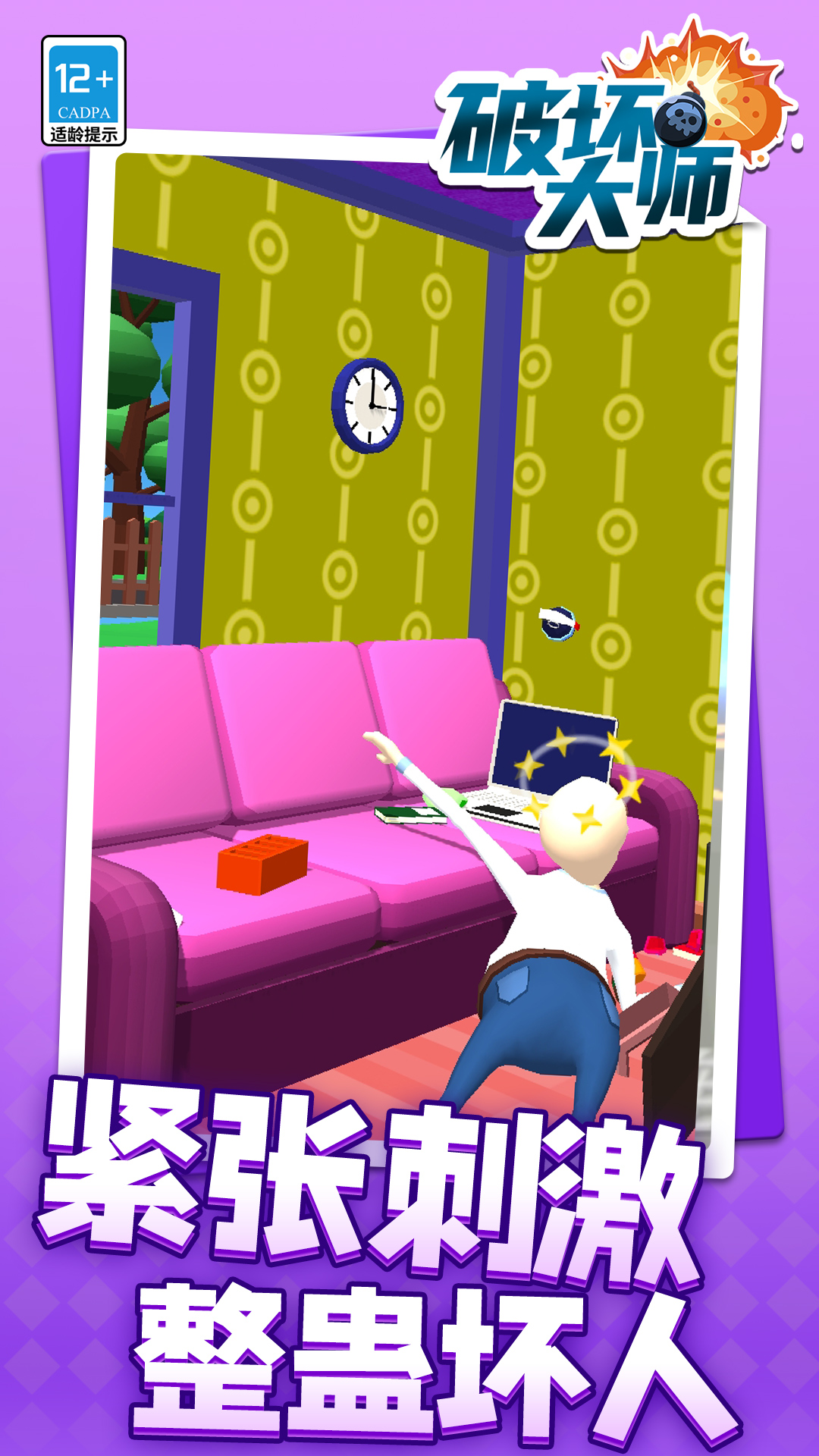 《破坏大师》是一款休闲创意类型的小游戏。游戏中设置了各种各样的房间场景以及多种武器,以此来模拟破坏过程,简单来说,就是可以尽情地、毫无顾忌地进行破坏!这游戏没有别的复杂元素,其目的就是让玩家发泄情绪,享受那种畅快的感觉!在游戏里,玩家只需点击想要投掷物品的地方,就能摔碎那些瓶瓶罐罐。只要是在物品列表里存在的东西,像盆子、酒杯、家用电器等都可以被摔碎,而且还能够使用游戏中的硬币去兑换新的可摔物品哦。这款游戏没有时间限制,是一款免费的解压游戏,如果您想要释放压力的话,就快来玩吧!