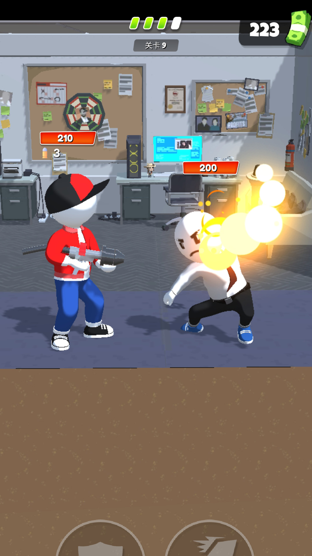 游戏中,玩家扮演一名大头火柴人,通过合成各种元素和道具,获得各种武器,装备武器,与敌人进行一场紧张激烈刺激的格斗比赛!成为格斗之王!