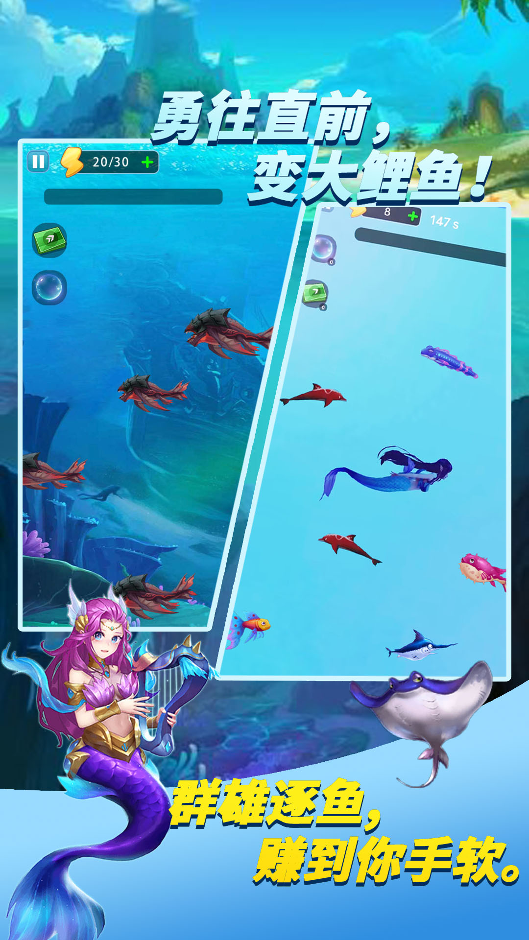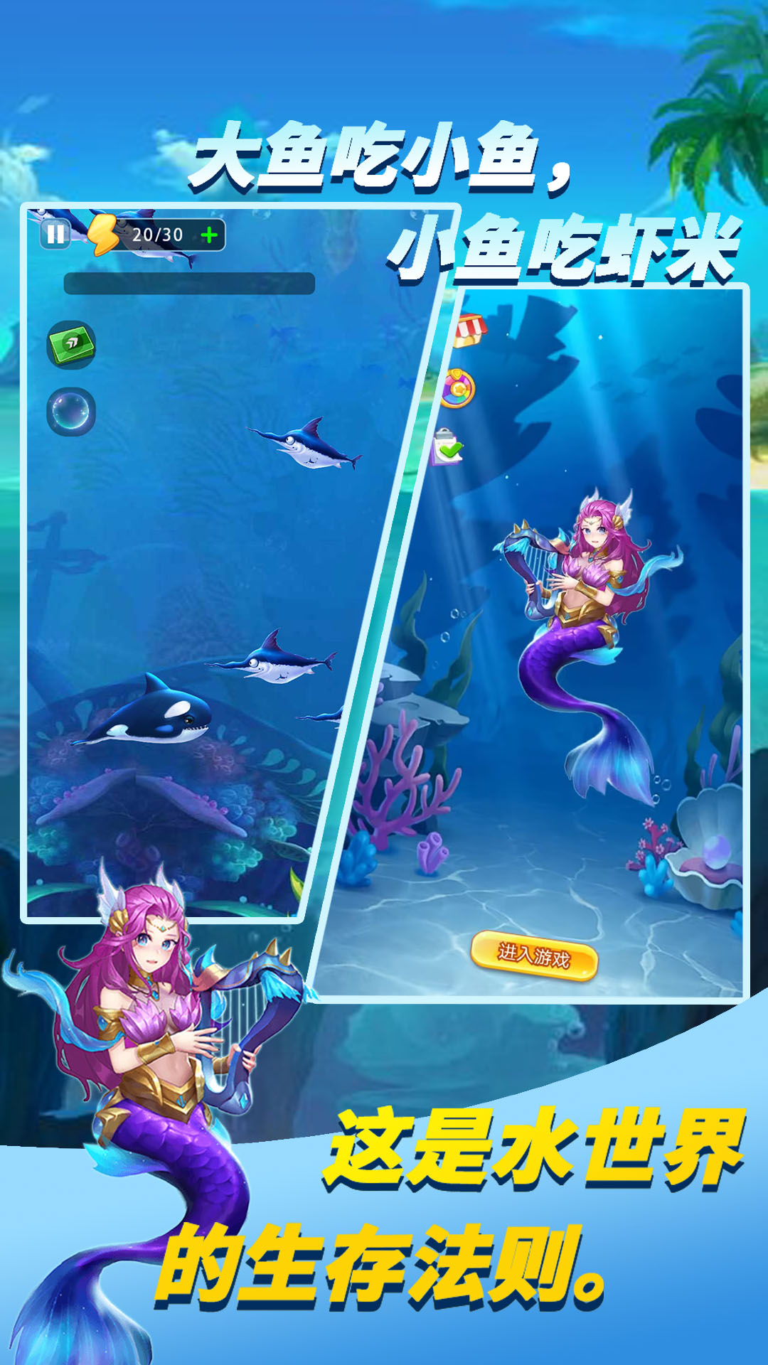 本游戏是一款老少皆宜的休闲小游戏,单手即可开始。玩家在游戏中控制一只小鱼,通过前期猥琐发育,凭借惊世智慧和反应力躲开强大的敌人在这个弱肉强食的世界中成为一方霸主。
