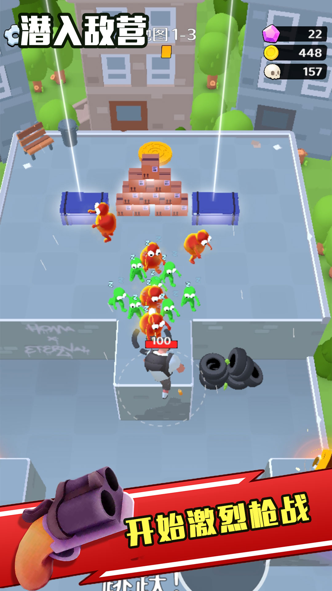 《潜入敌营》是一款紧张刺激的冒险闯关游戏,游戏中,玩家将潜入一个被僵尸占领的世界,进行激烈枪战,消灭各种成群的僵尸,从而不断闯关。