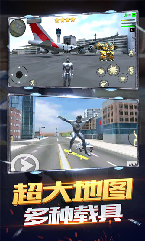 游戏中,当人们需要超级英雄的时候,他就会出现在城市上空,保护人们免受伤害,解救出已经被绑的人员。并且超级英雄精英拥有着人们所意想不到的技能,不仅能够快速行进,还可大幅度跳跃、极速飞行等,能够更快速地解救人类。射杀敌人时,玩家可利用现有武器,通过精准射击来射杀敌人。玩家需要在规定时间内帮助人们远离敌人,并将敌人射杀,才可完成任务,顺利进入下一关。