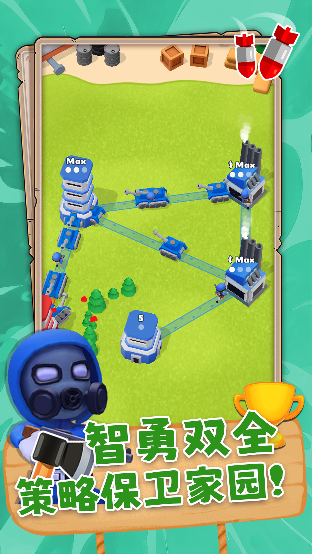 战争已经打响,我方节节败退,只等你来力挽狂澜。无论你平时喜欢坐在扶手椅上指点江山,还是自认拿破仑再世,这款简洁而优雅的休闲战术游戏都一定会让你爱不释手。只需用手指轻轻一扫,就能亲临战场,看着你麾下的小战士们消灭敌人,用你高超的指挥技巧率领可爱的微型军队叱咤风云,从而维护你的尊贵地位,让对方军队甘拜下风。