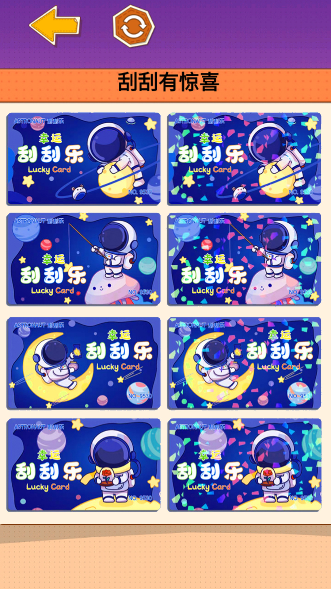 刮刮乐盲盒惊喜模拟,在刮开奖票之前,你不会知道底下隐藏了什么神奇的奖励!《沉浸式刮刮乐》是一款沉浸式休闲刮刮乐模拟游戏,充满趣味性,可以逼真地模拟刮刮卡等解压小游戏,让您开心乐不停。在这里可以免费试试您的手气,看看您的运气。每天都可以免费获取新的刮刮乐奖票哦~