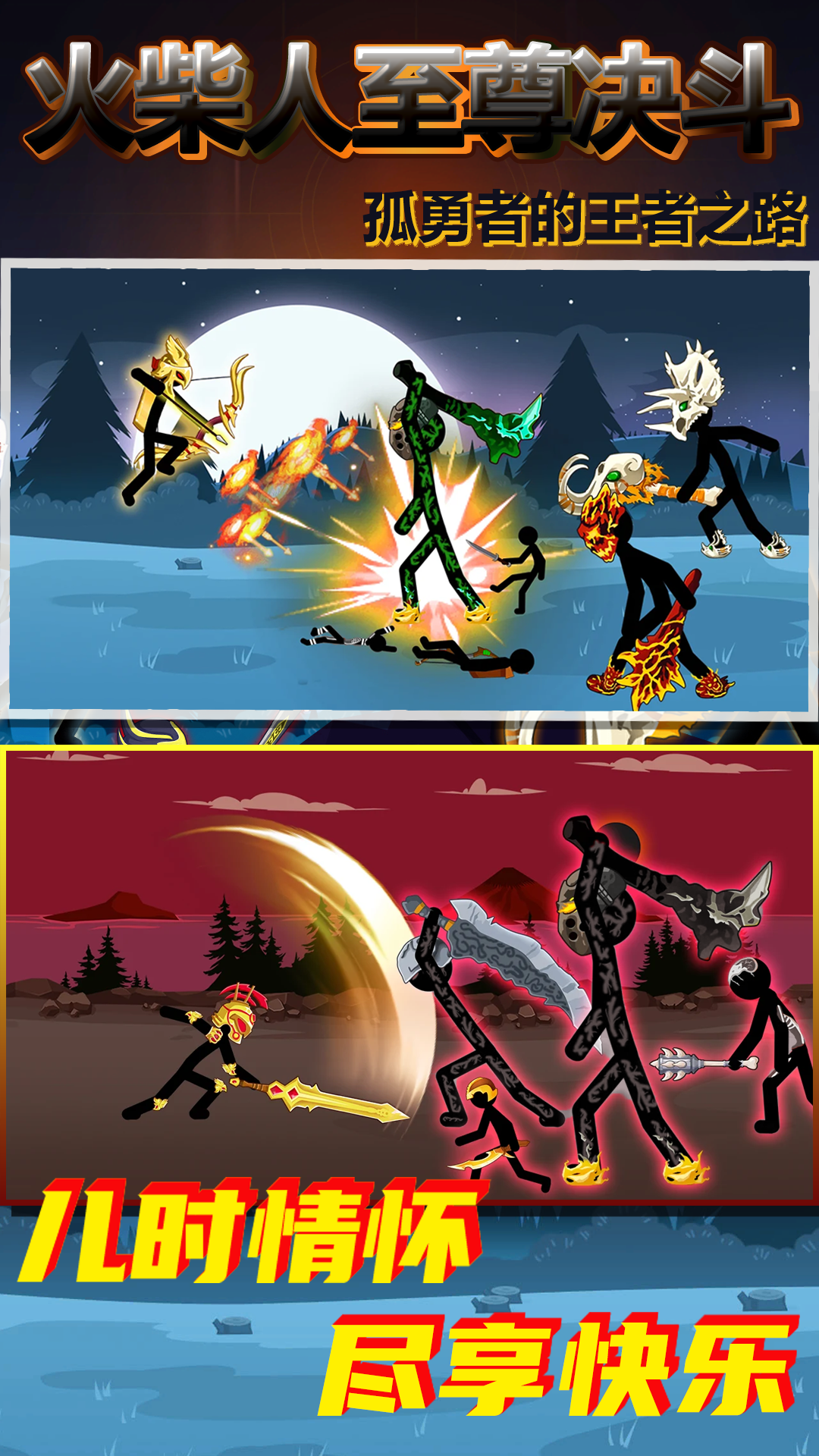 各种传承进化角色:棒族战士、英雄战剑、弓箭手大师、巨型火柴人……
