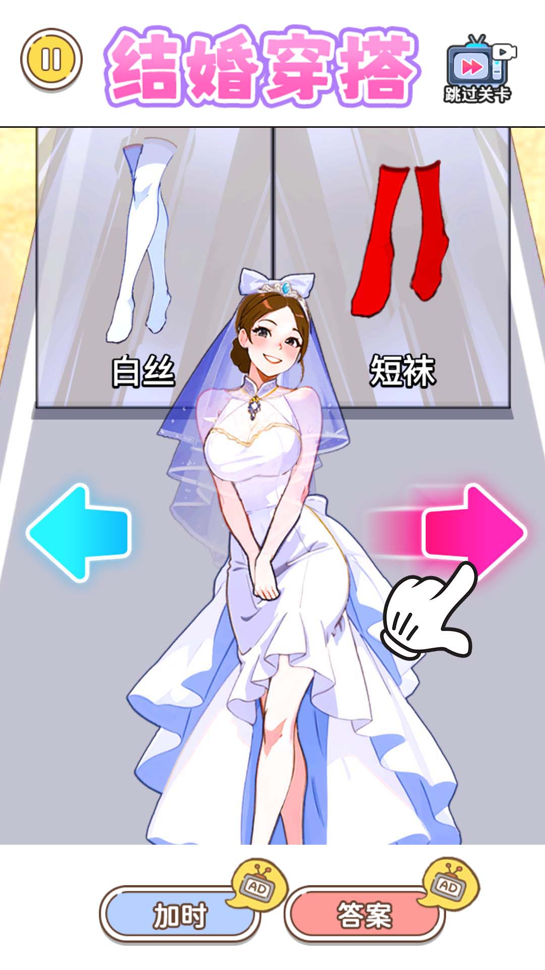 穿搭选左右小是一款有趣的休闲益智小游戏,在游戏中你需要帮新娘选合适的穿搭,游戏十分有趣,如果你喜欢我们的游戏就赶紧来下载体验吧!