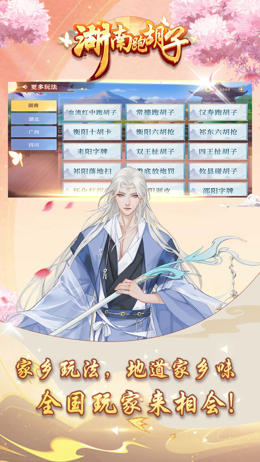跑胡子、字牌玩法大合集,地道家乡玩法通通有,天天送好礼只等你来挑战!《湖南跑胡子》游戏包含了:常德跑胡子,汉寿跑胡子,十胡卡,衡阳六胡抢,耒阳字牌,祁东六胡抢,双王扯胡子,四王扯胡子,祁阳落地扫,娄底放炮罚,攸县碰胡子,怀化红拐弯,邵阳剥皮,邵阳字牌,湘乡告胡子,郴州跑胡子,大冶字牌,保安字牌,阳新字牌,广西桂林字牌等多种地方玩法,一次下载畅玩多款,玩牌更有好礼相赠。