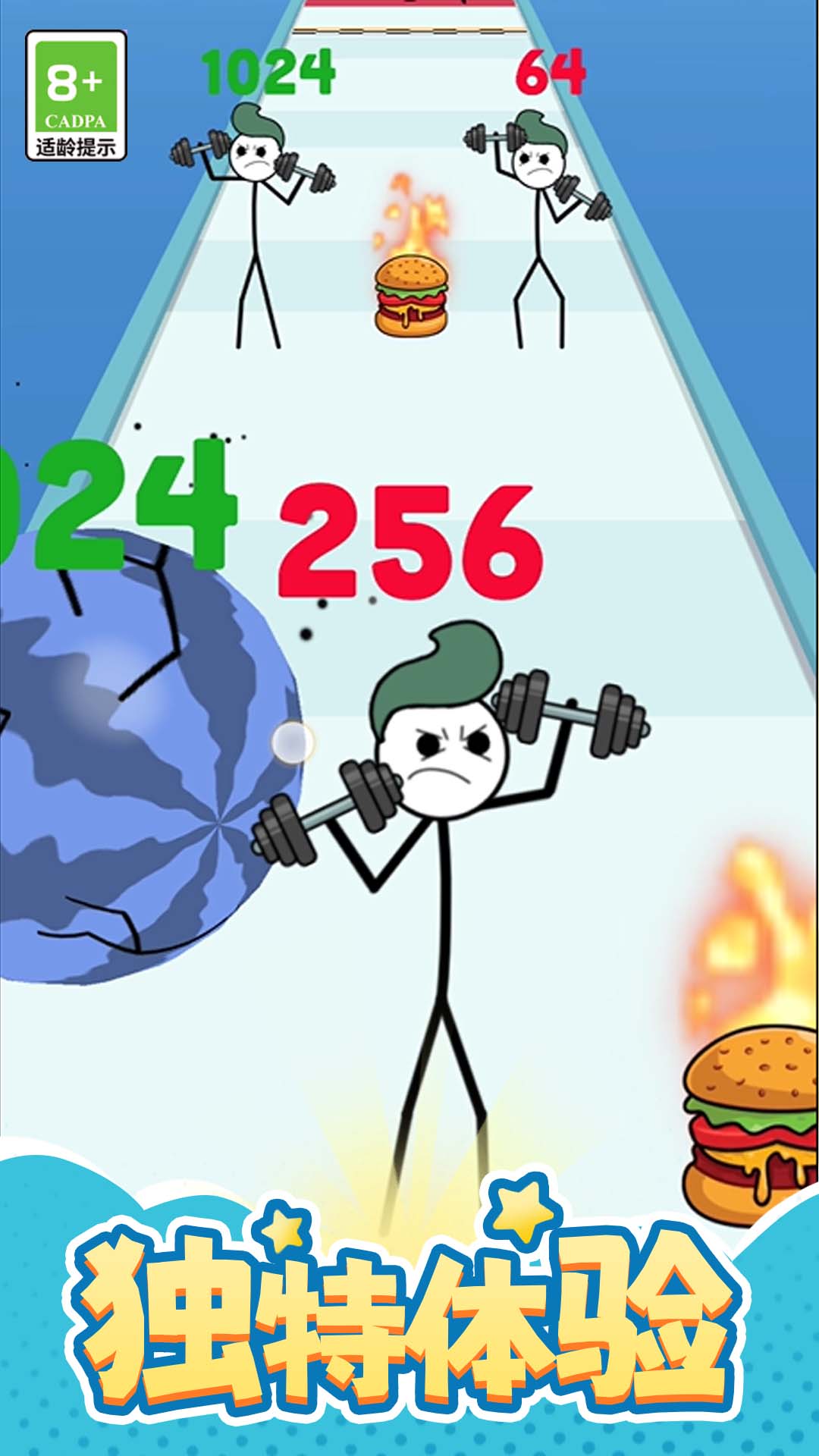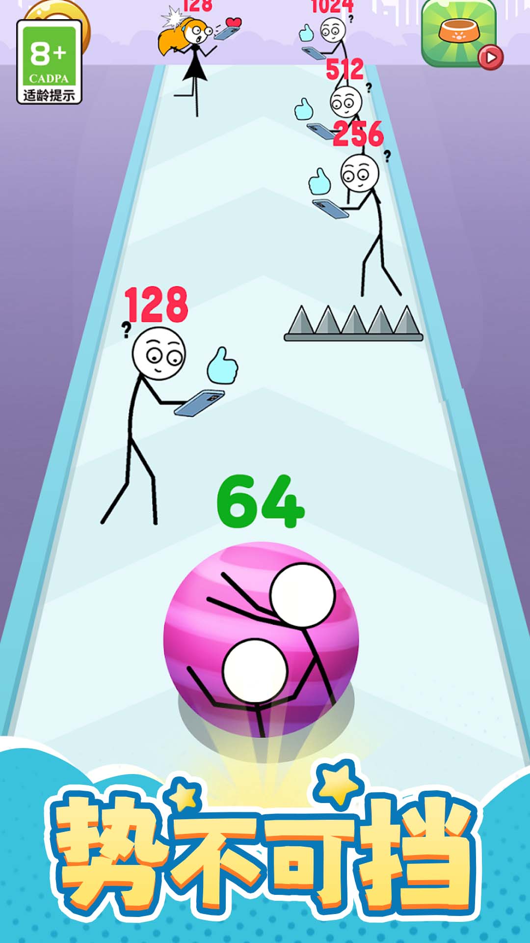- 灵活的控制:滑动将球滚动到具有匹配数字的火柴人角色中。你的目标是在每个级别达到高分 2048。