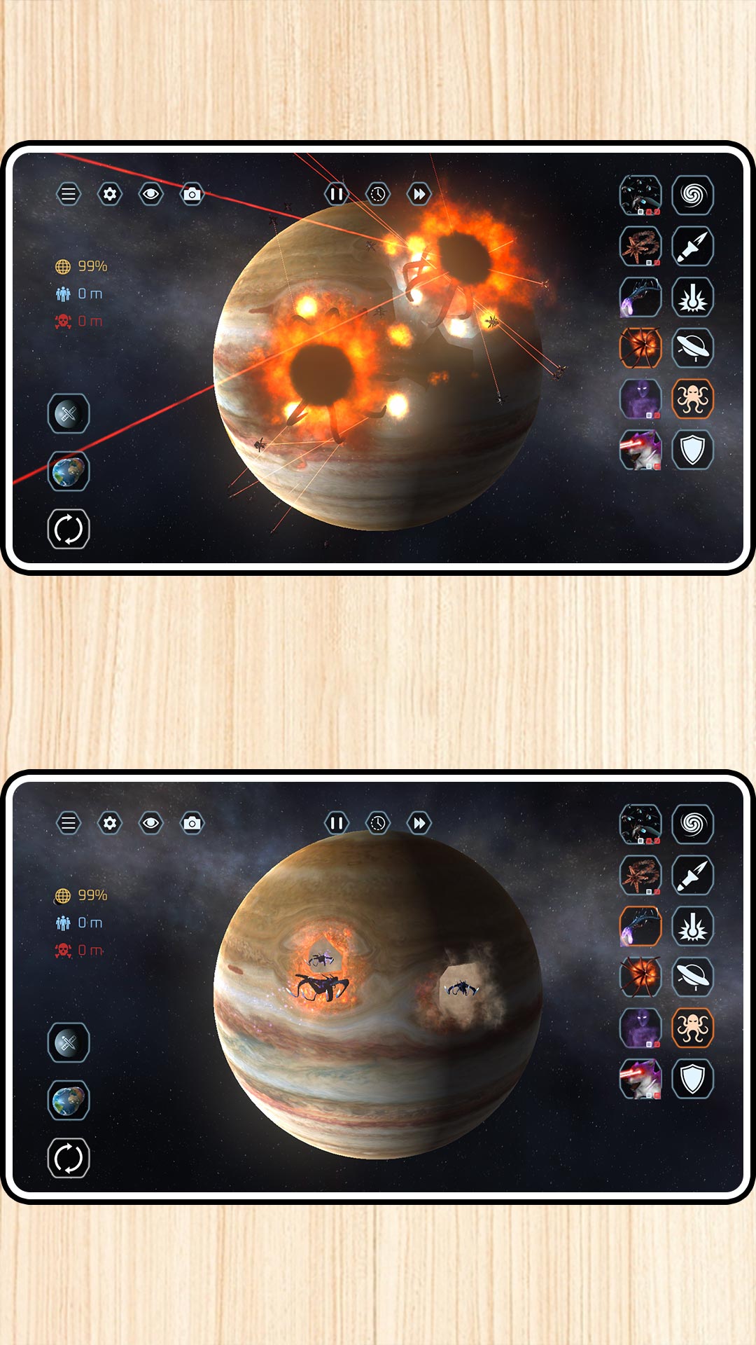 模拟星球破坏2是一款超级解压的休闲游戏,在游戏中,您可以使用各种各样的超级武器对星球进行破坏,武器威力超强。尽情体验游戏快乐,释放压力。游戏好玩有趣,画风优美,操作简单,快来下载体验吧