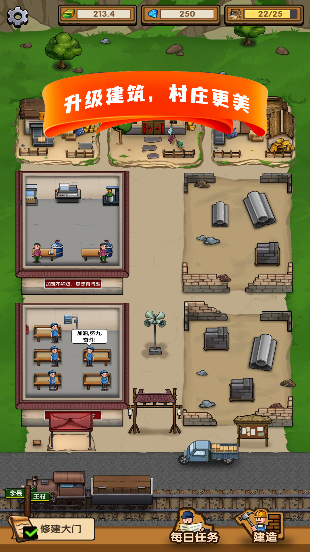 在这款经营类休闲游戏中,玩家将扮演一位村长,负责管理和发展一个充满活力的村庄。游戏设定在一个宁静而富饶的村子里,玩家需要建设和运营各种工厂,生产多样化的商品。通过货车和火车运输系统,将商品销往各地,或在村庄的热闹街市上摆摊直接交易。随着游戏的进展,玩家可以升级村庄内的建筑,解锁更多样的建筑物和功能,带领村子走向繁荣。游戏中,玩家将体验到经营与发展的乐趣,同时也承担着带领村民共同创造更好生活的责任。