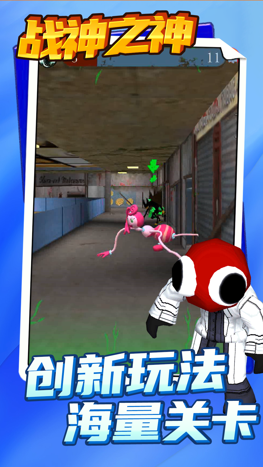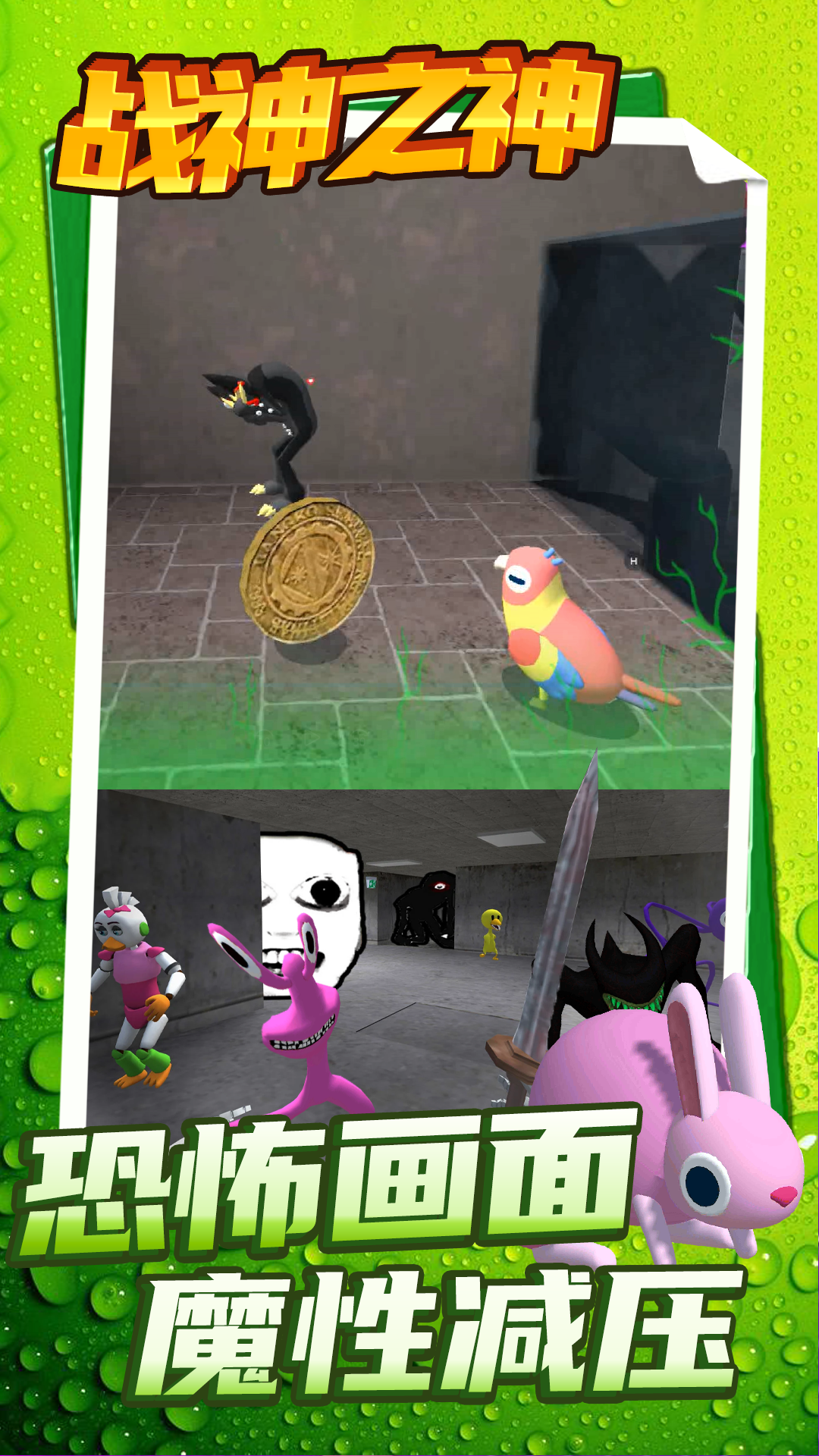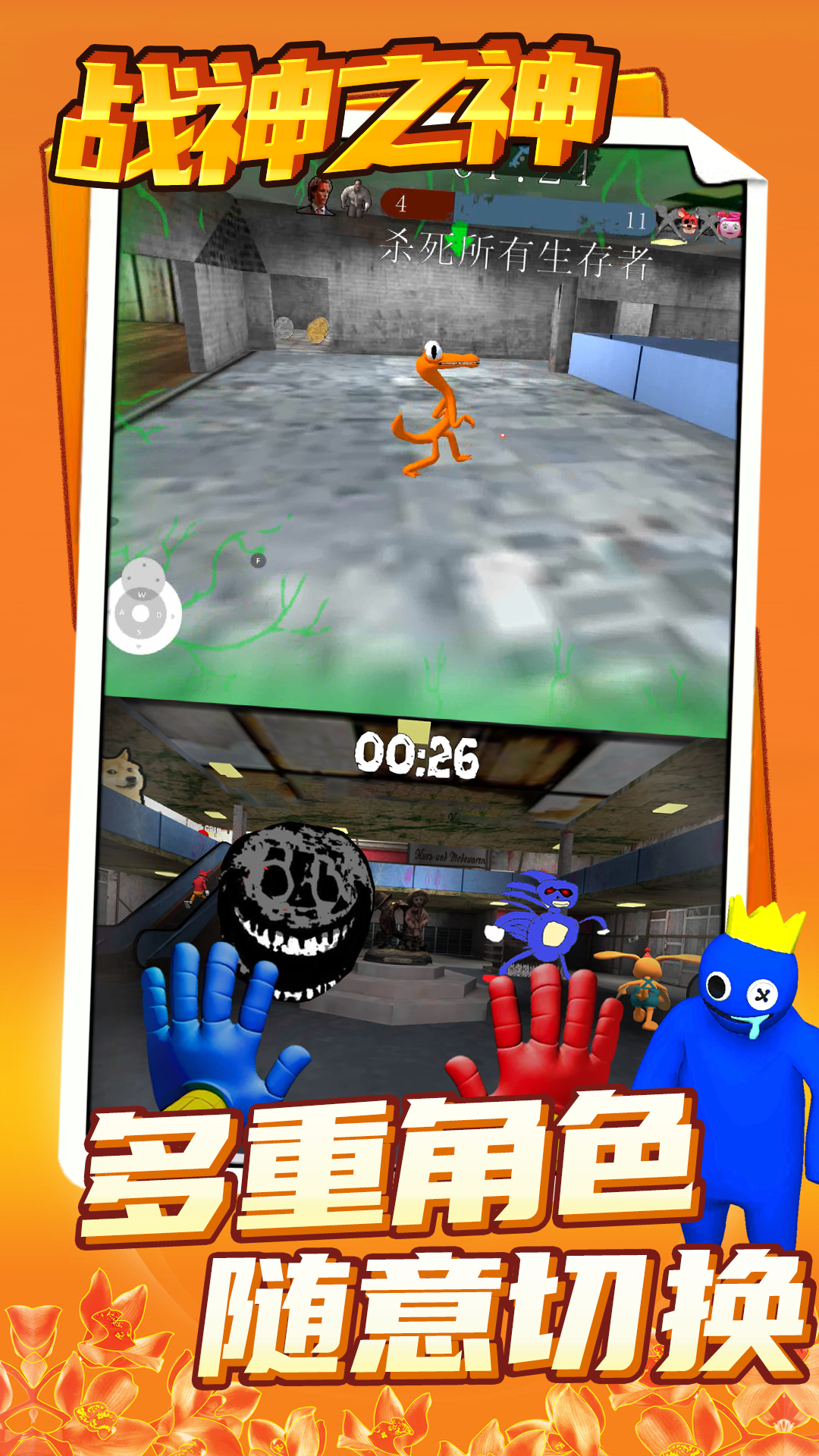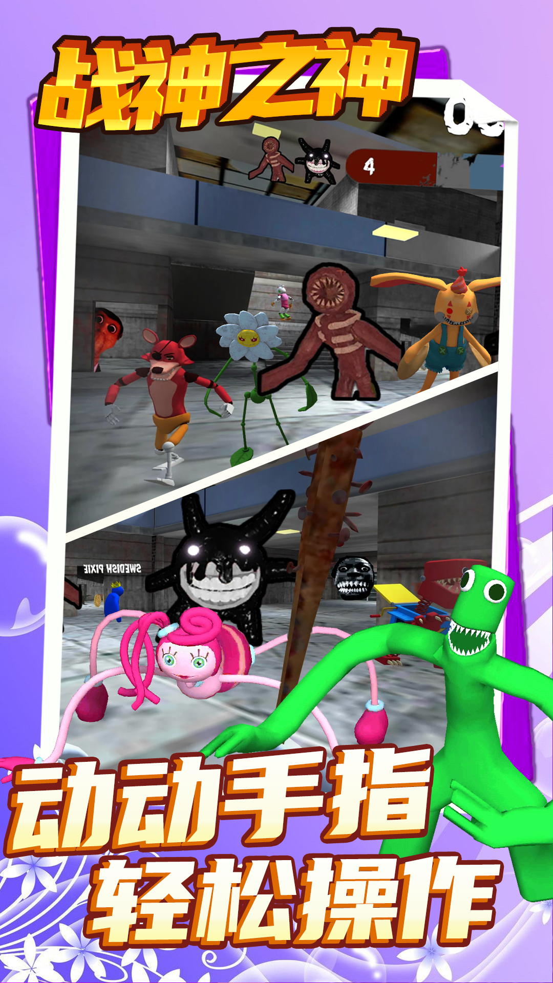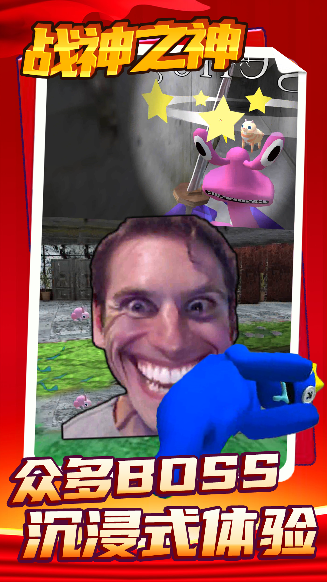 《战神之神》是一款好玩上头的休闲射击类游戏。在这款游戏里,我们不再躲在安全的地方,我们拿起武器,与那些恐怖分子战斗。你可以扮演专业的怪物射手或熟练的剑客与你喜欢的弗雷迪熊、僵尸妈咪、乌吉、宝宝和彩虹朋友并肩作战。如果你想生存,你必须聪明地思考,并且隐藏保护好自己。做一名合格的冒名顶替者。你也可以成为怪物狩猎者大军中的一员,捕猎那些彩虹朋友世界里的怪物们。你准备好尝试了吗?