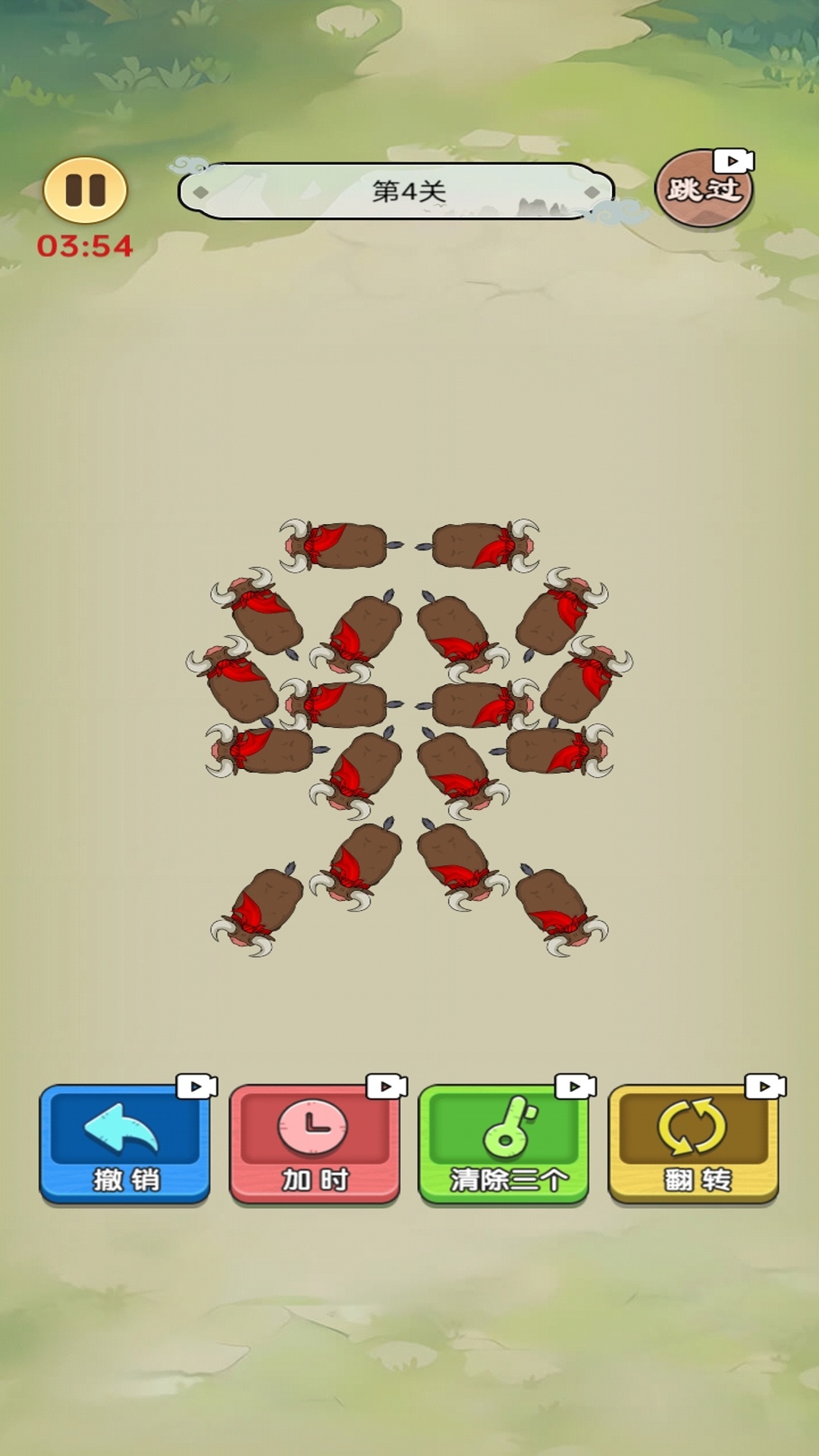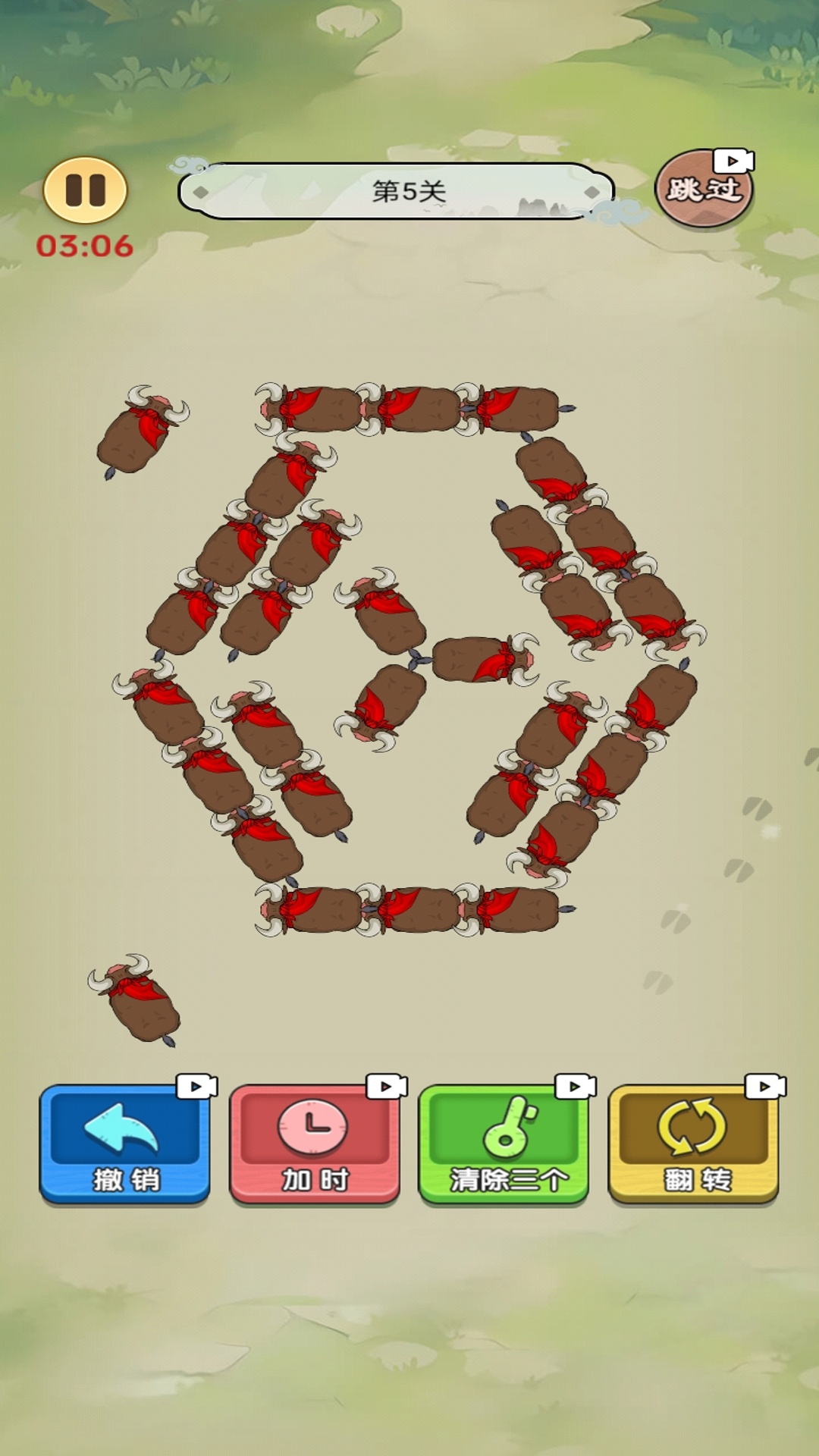 在快乐拯救这个游戏里,是一片草地里,有一群牛牛会往已有的方向狂奔,要让它们不相互对撞并且全部逃离这片草地,你有什么好方法呢?