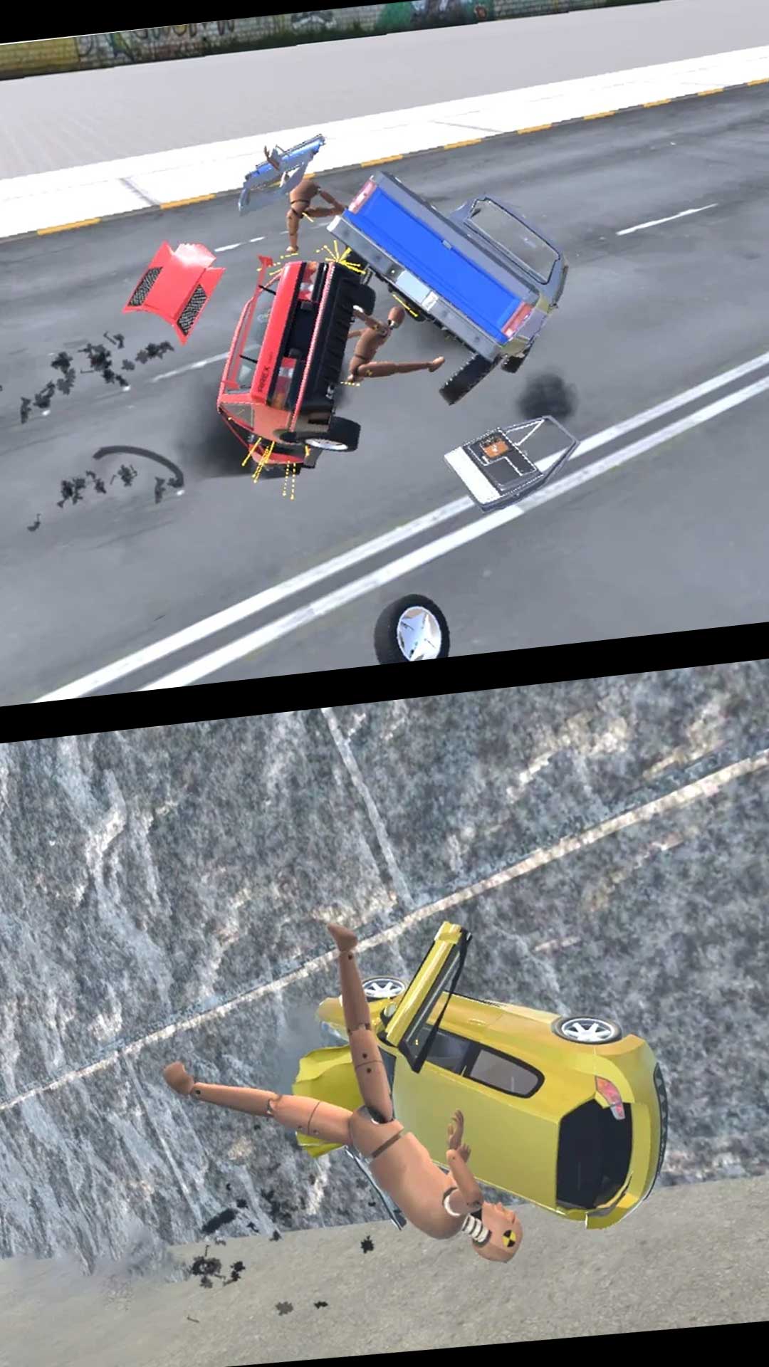 玩家可以驾驶车辆在沙盒中自由进行模拟,并可选择不同的车型、同时控制多辆汽车进行模拟,通过真实的物理效果还原汽车的各种碰撞反馈。