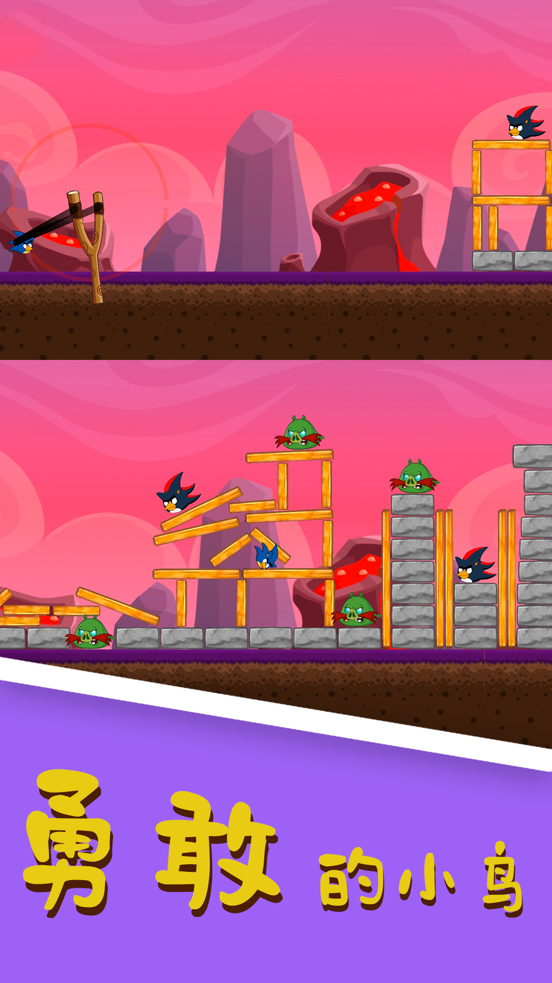 利用狂怒小鸟的秘技,摧毁贪吃猪的防御!向偷蛋的贪婪猪猪讨回公道!使用每只鸟独有的能力摧毁贪吃猪的防御。依照物理学原理,在狂怒小鸟充满挑战性的关卡中摧毁猪猪的城堡。每一个关卡,想要冲破,都需要逻辑、技巧和力量的综合考量。
