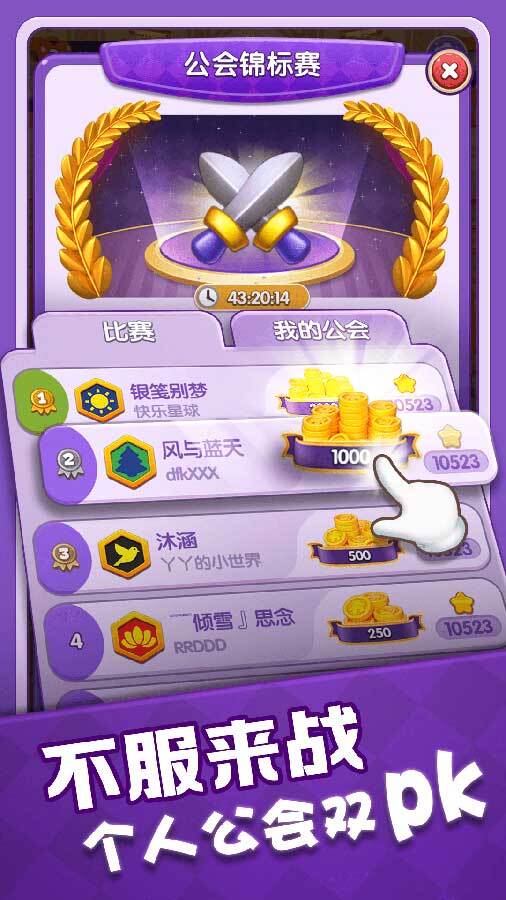 开心消除,趣味解谜欢乐多!明星锦标赛、公会锦标赛,冠军联赛等超多玩法等你来挑战!