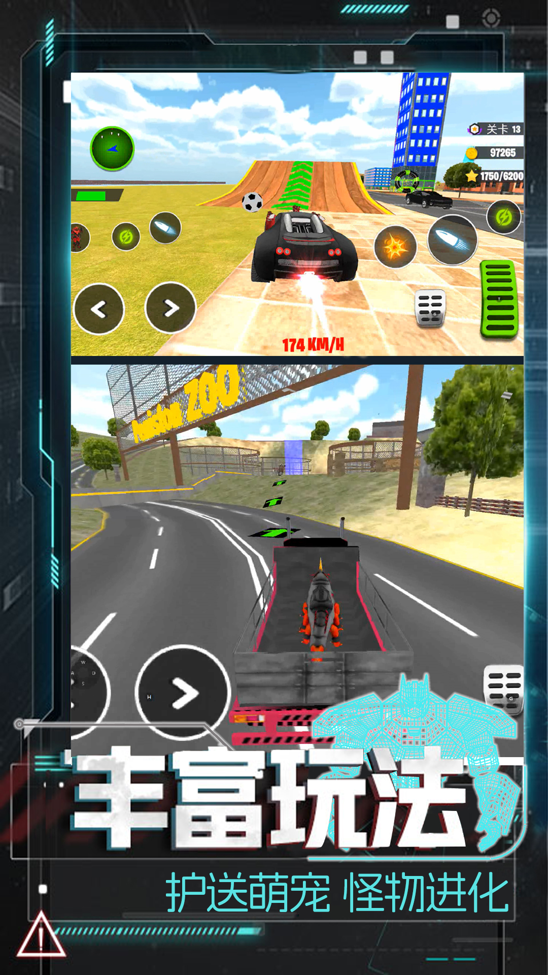 《恐龙圣斗士模拟器》是一款开放世界的冒险格斗游戏,玩家在被外星人、邪恶恐龙机甲、邪恶汽车人占领的城市中飞檐走壁,空中巡航,维护和平。各种交通工具,装甲战车任你选择。游戏采用了3D的变形金刚风格,画风真实有趣,感受在城市里飙车带了的真实物理碰撞体验。打败更多的敌人,赚取更多的赏金来升级你的装备和英雄技能,购买更多的武器和战车,横冲直撞,火力全开,高能出击!