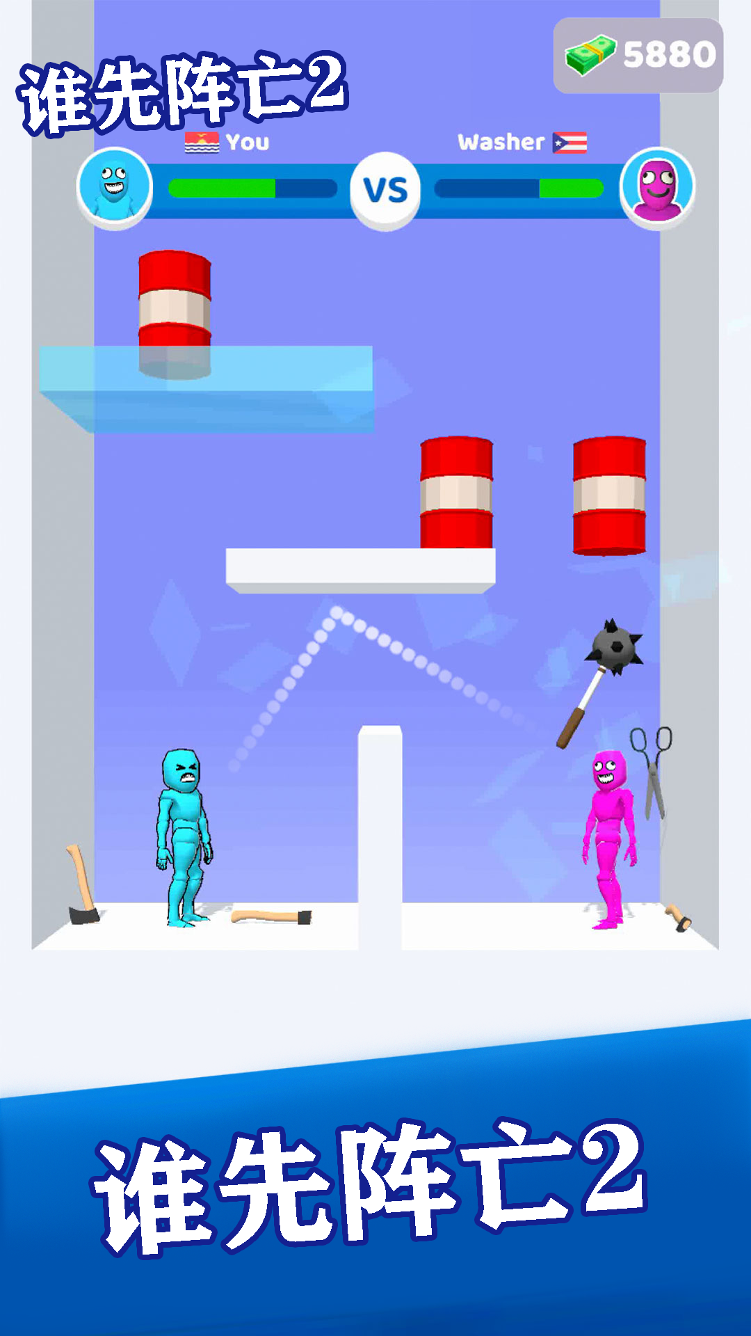 这是一款极度休闲的小游戏,简约清新的画面能够使玩家有种十分舒适的感觉,在游戏中玩家需要去使用各种武器来进行投掷,通过不同的抛物线去攻击对方,哪边的血条先消失,哪边就失败了,里面的关卡很多,每一关里的地形都会有所变化,感兴趣的小伙伴快来试试吧。