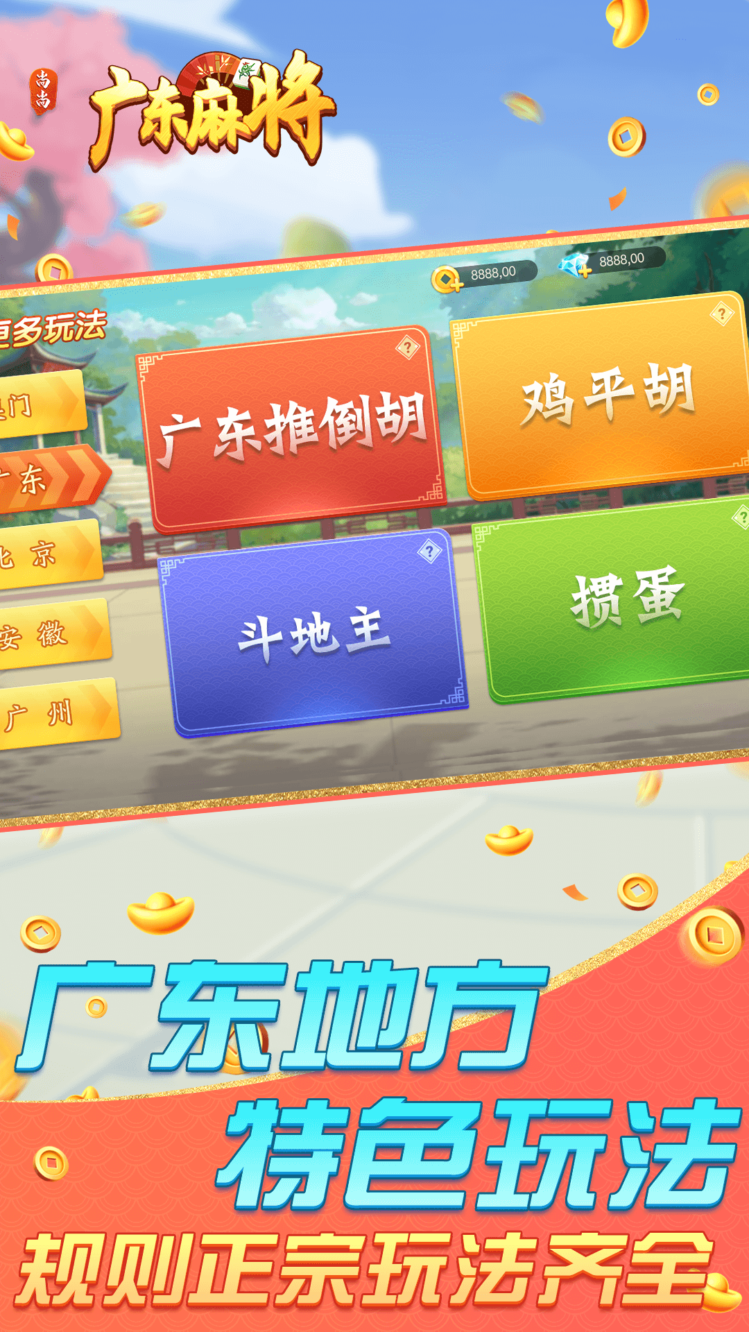 广东推倒胡麻将、推倒胡、斗地主。深入本地特色,玩法正宗齐全。