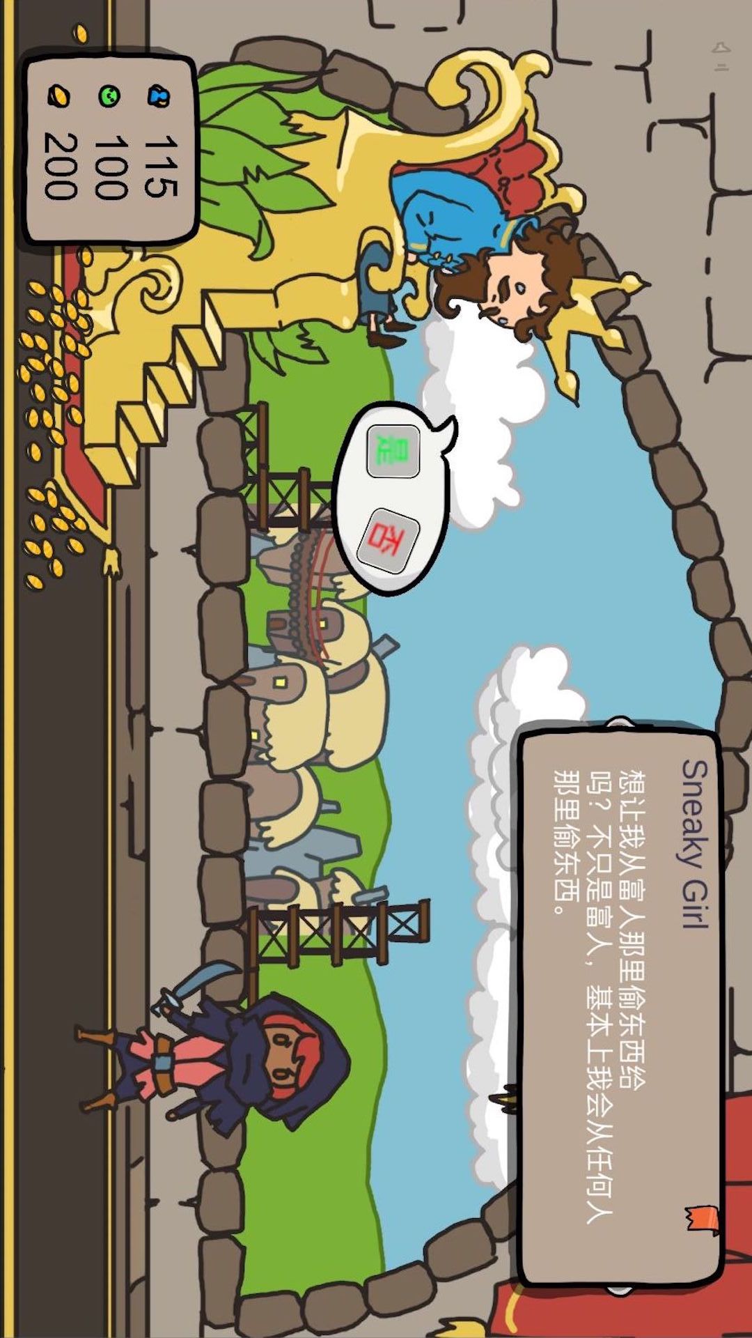 一款简单但是很有趣的巧思独立游戏。在游戏中你是一位国王,负责王国的各种重要(或不重要的)决策。 只需要用简单的“是”或“否”来发布命令,发展自己的王国。你会看到经过自己的英明决策,王国人数暴涨,人民幸福。这就是作为国王的荣耀。