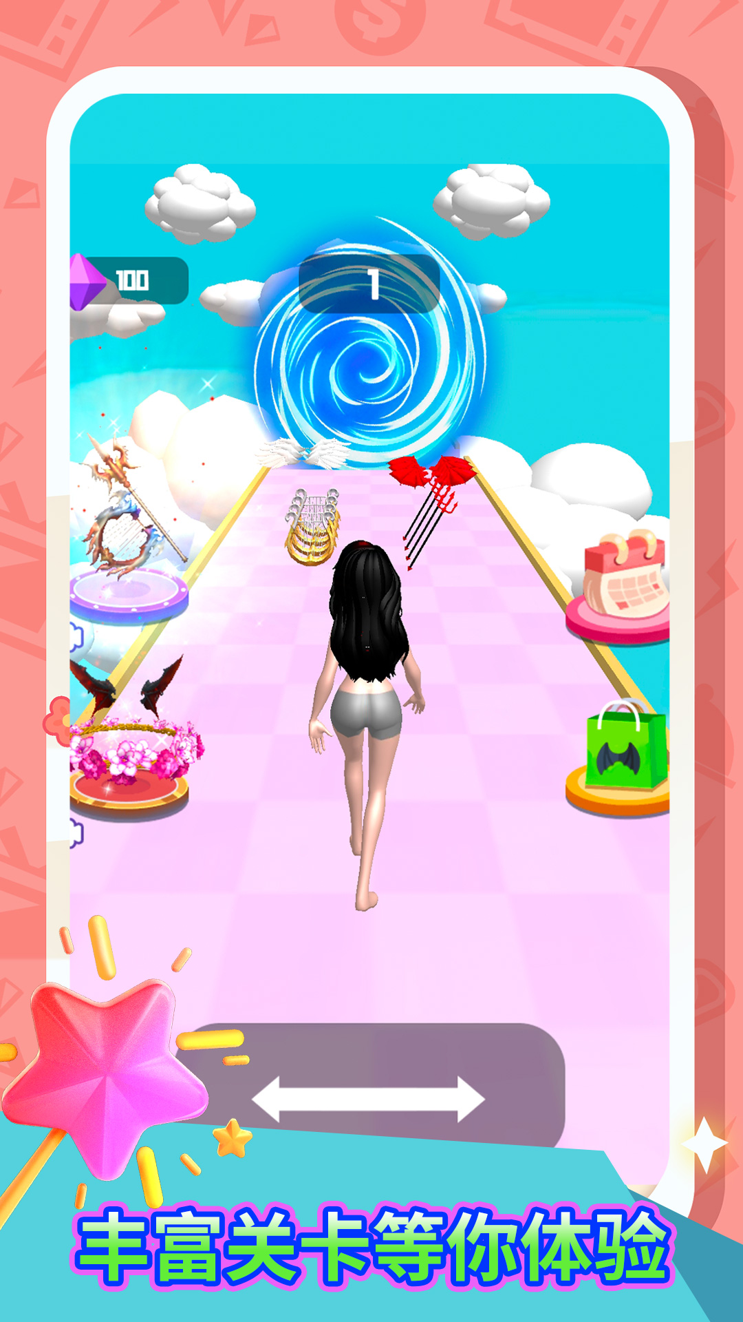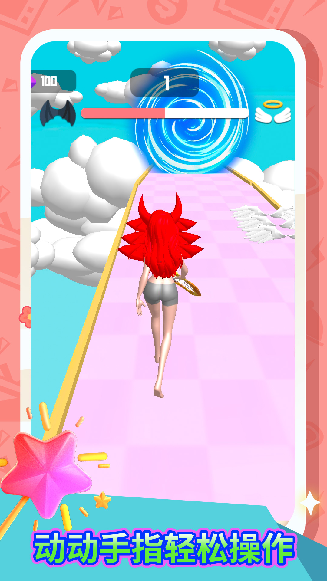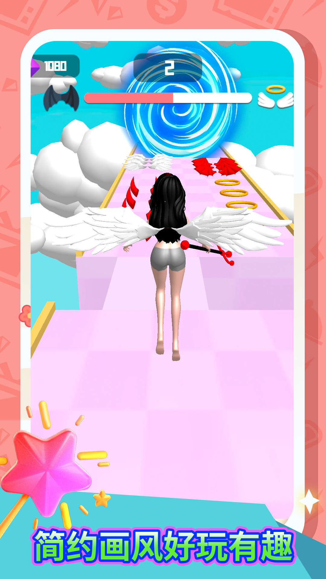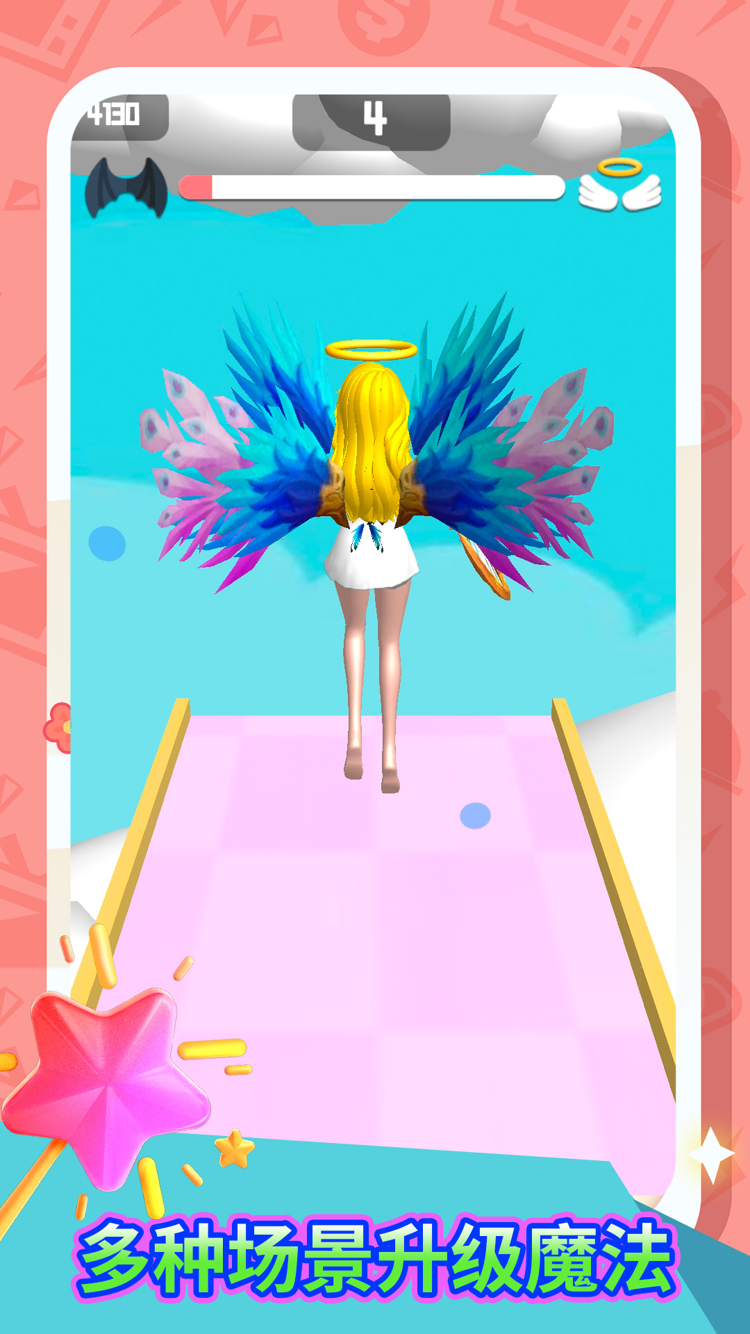 《禁止使用魔法》是一款变身跑酷游戏。玩家将在前进道路上选择天使或恶魔,完全不同的两种进化状态。在这里,魔法是不管用的,天使还是恶魔,选一个吧!