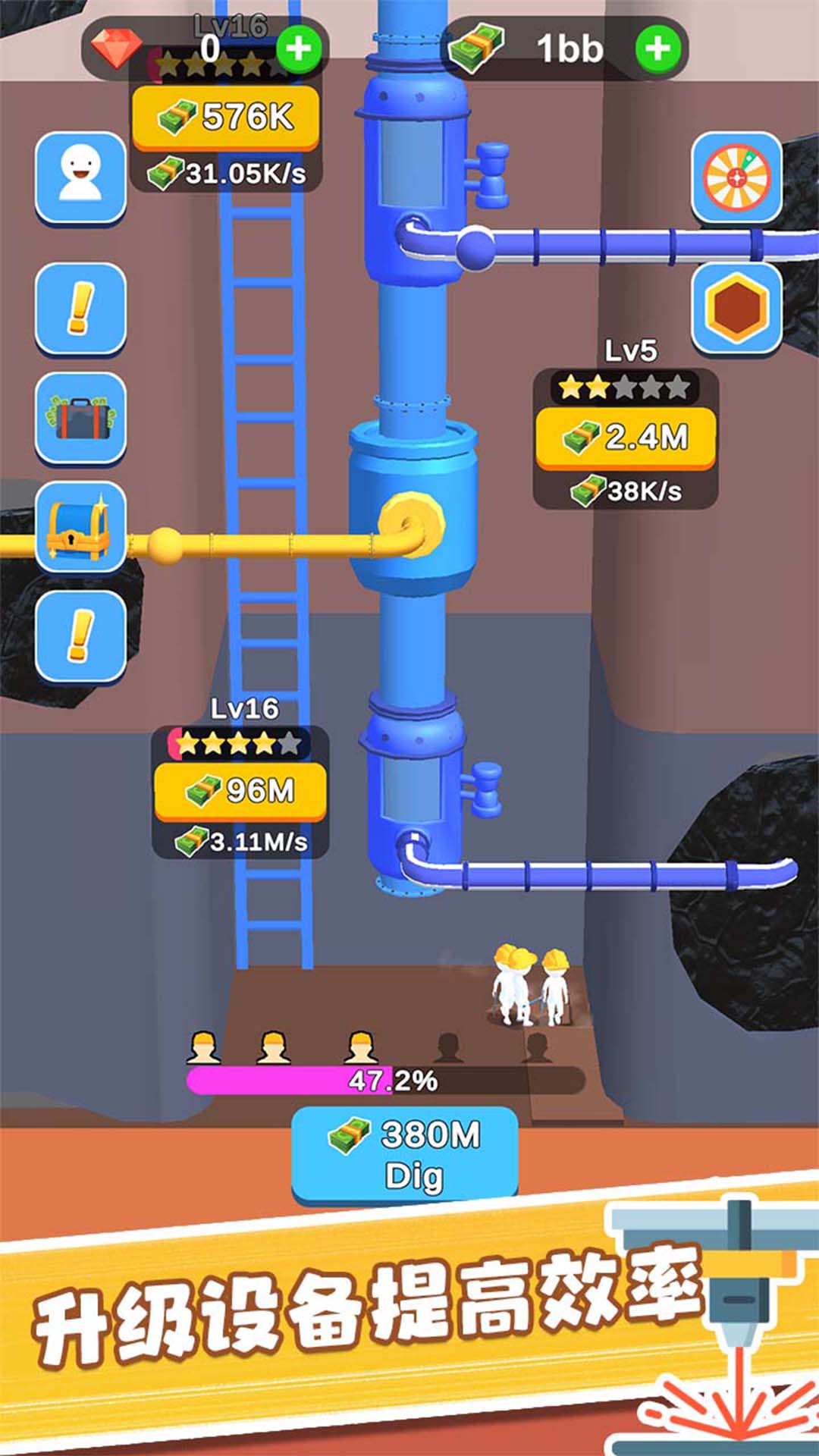 你经营一家石油公司。你很幸运能在沙漠中找到油田。现在让设备开始工作,为你挖出源源不断的原油。稳定的油意味着财富,您可以不断升级设备以提高采油效率。