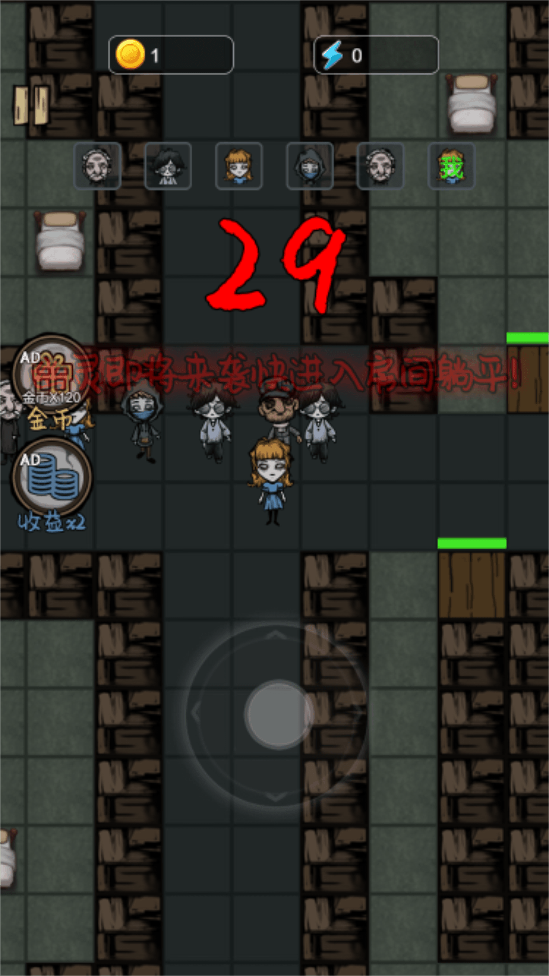 一款趣味的休闲生存小游戏,在残酷的末日,好多生物都变异了,你需要快速的躲进安全的房间,躺平发育获得金钱,并用金钱购买各种建筑来防御怪物的攻击,坚持住胜利属于你!