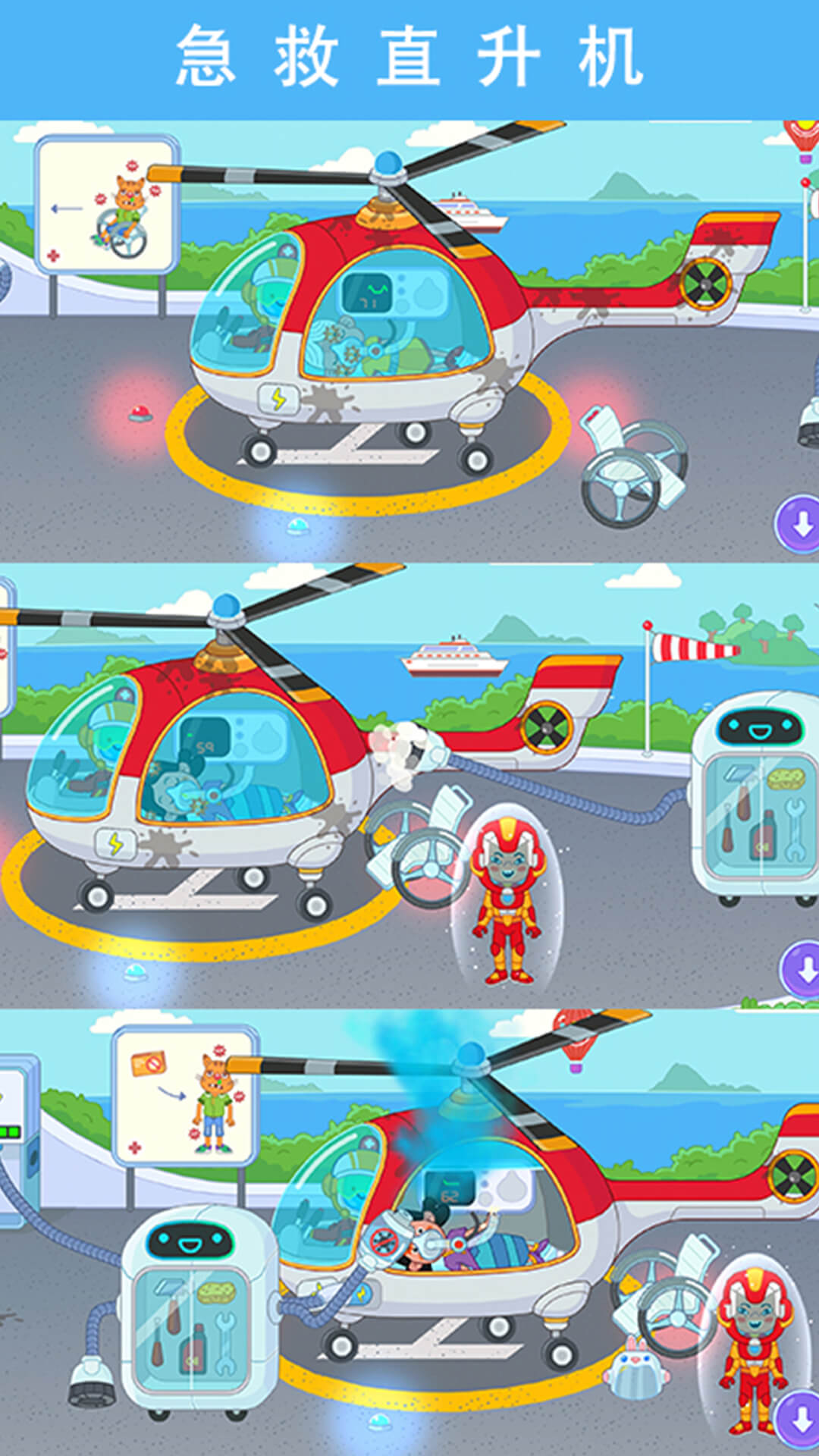 在这里,您将邂逅 7 个专为儿童设计的友善型医护机器人。这座现代化医疗中心,处处充满未来互动科技:从细菌实验室到直升机救护机,从布满迷你游戏的大厅到科学实验室。